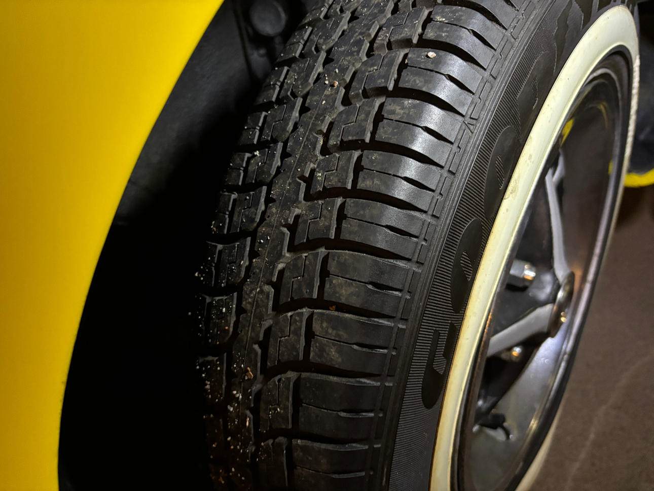 Neue Reifen mit weißen Reifenseiten.