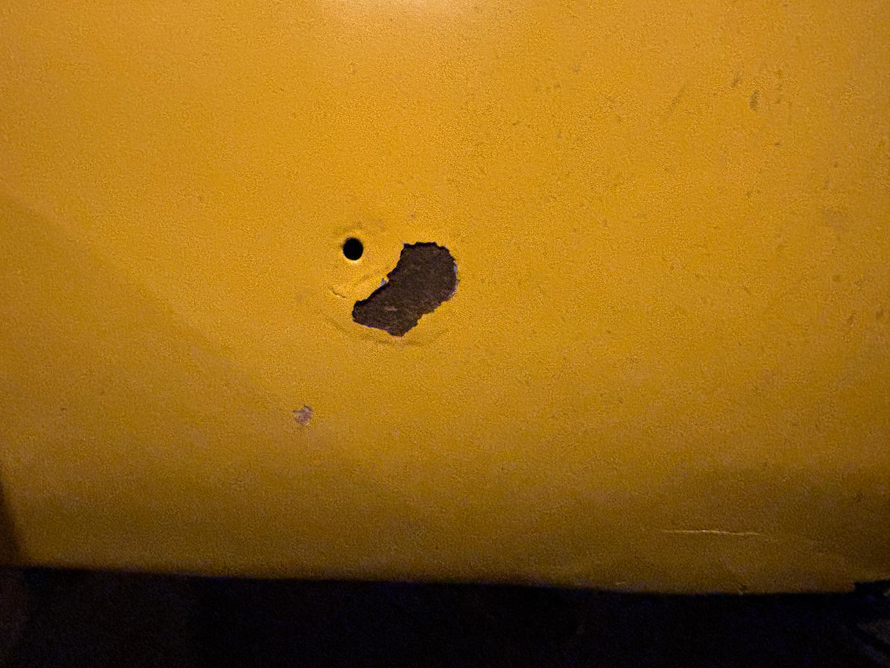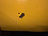 Der Lack hat sich dort gelöst, wo normalerweise ein Nummernschild montiert ist.