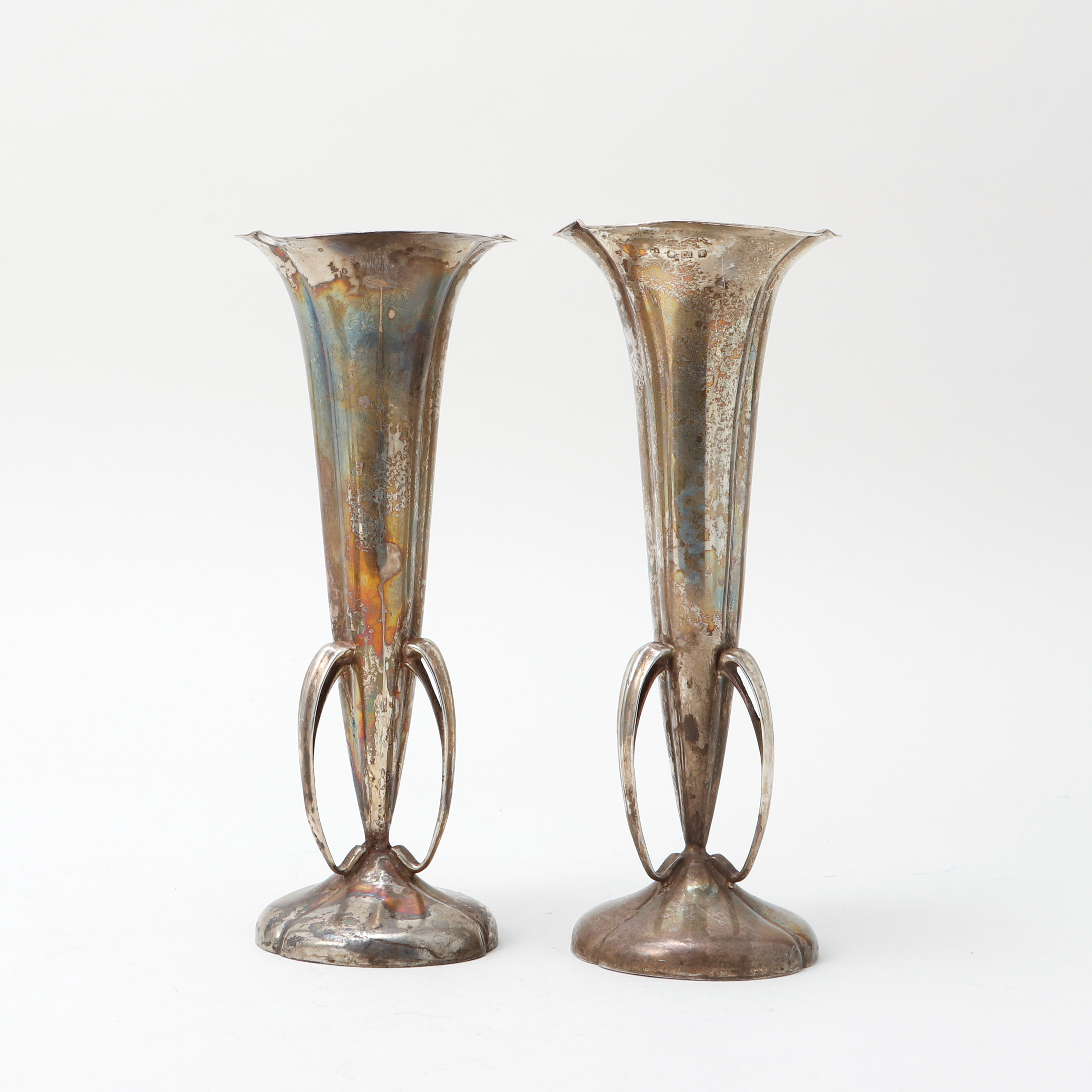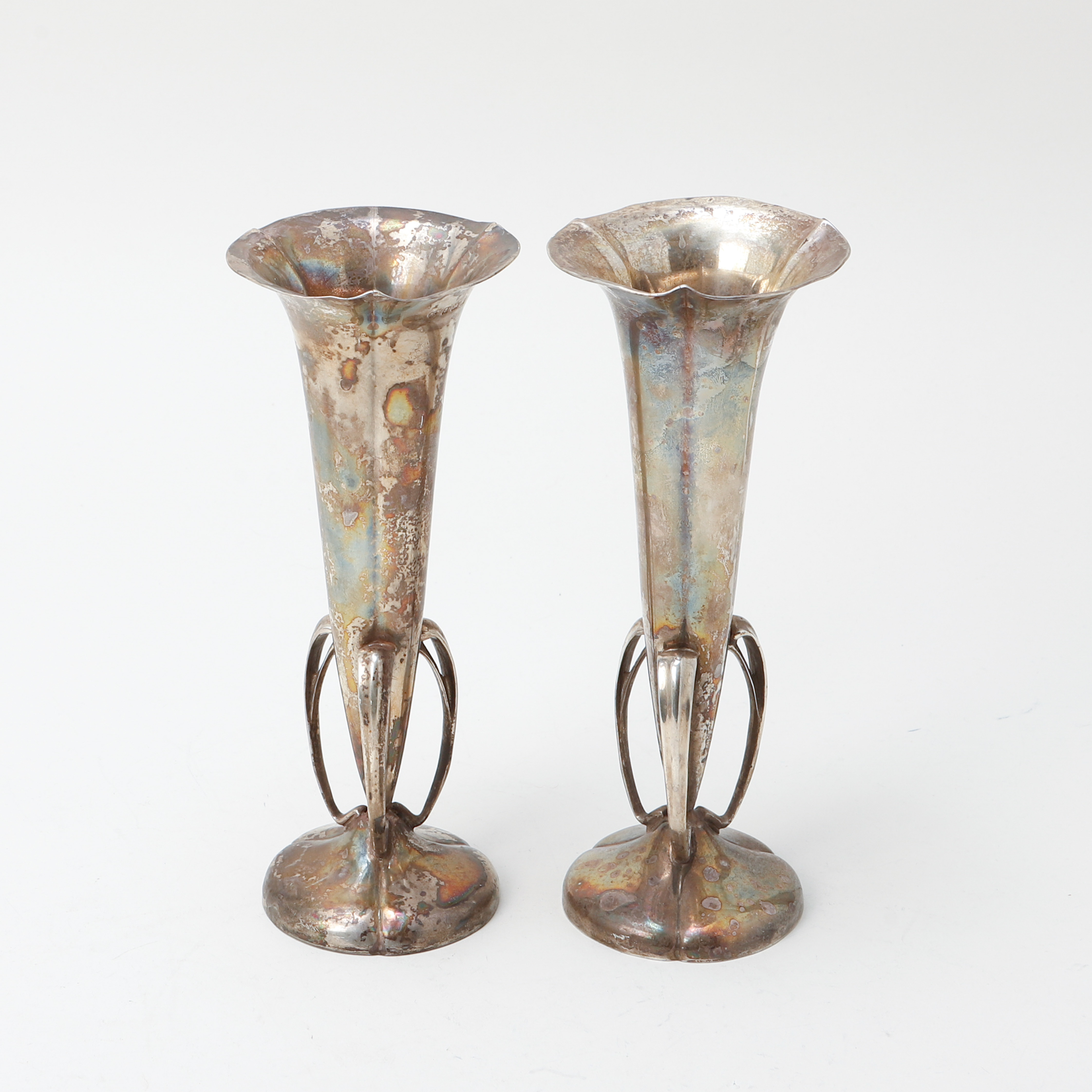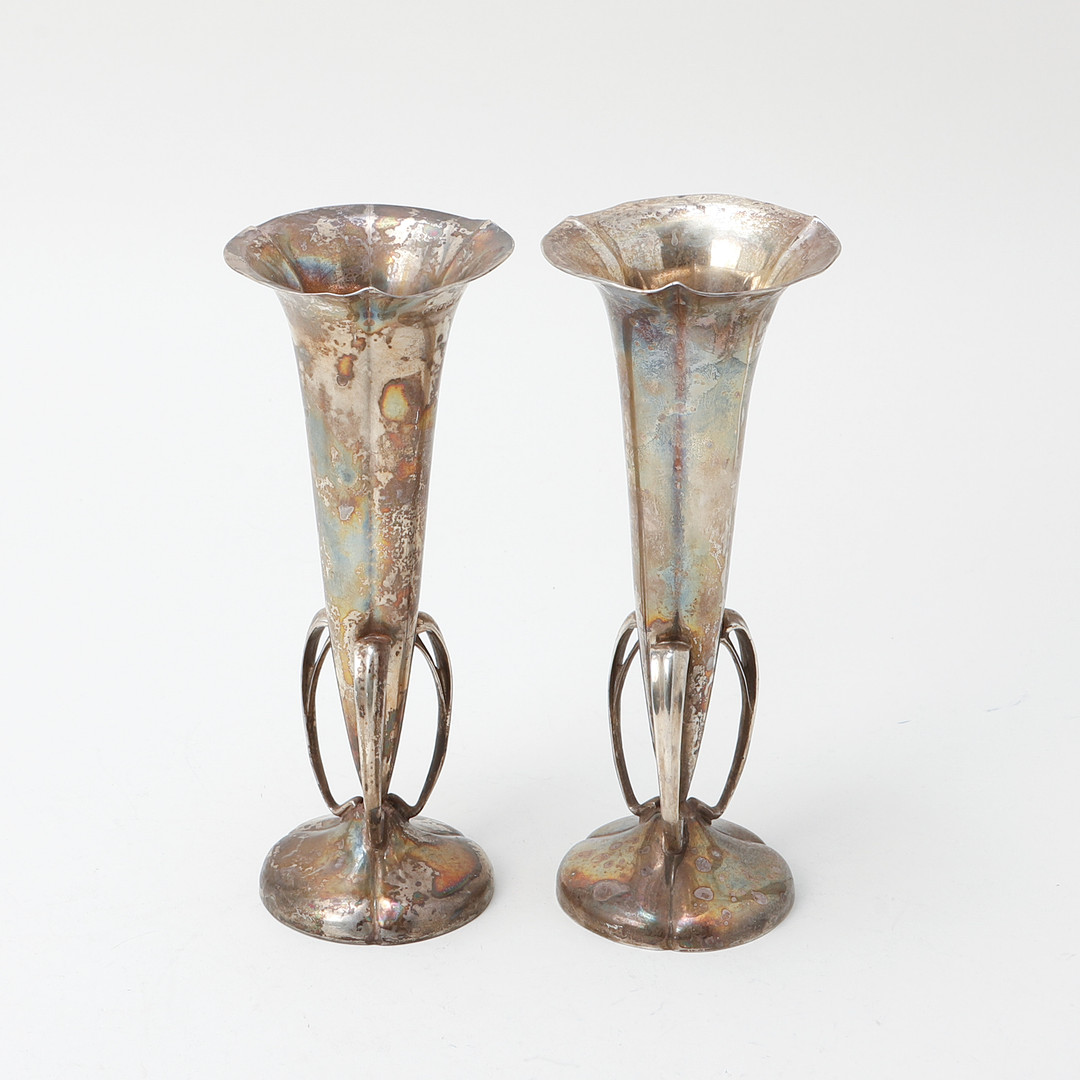 4050552. Ein Paar silberne Vasen, Birmingham 1905.