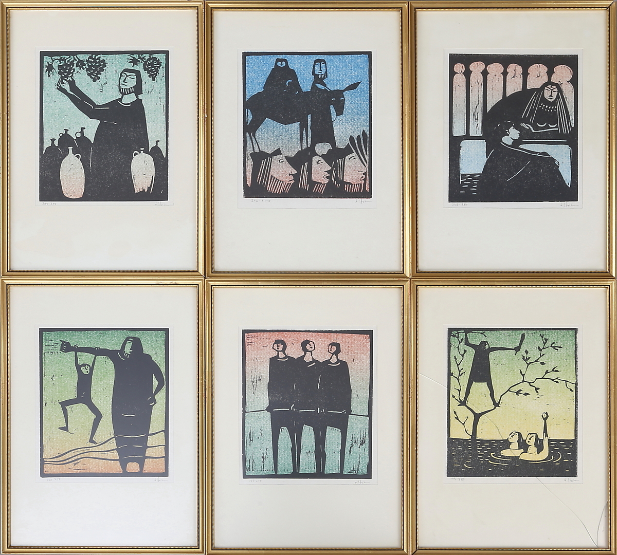 405199. ÅKE HOLM. 6 Linolschnitte in Rahmen.