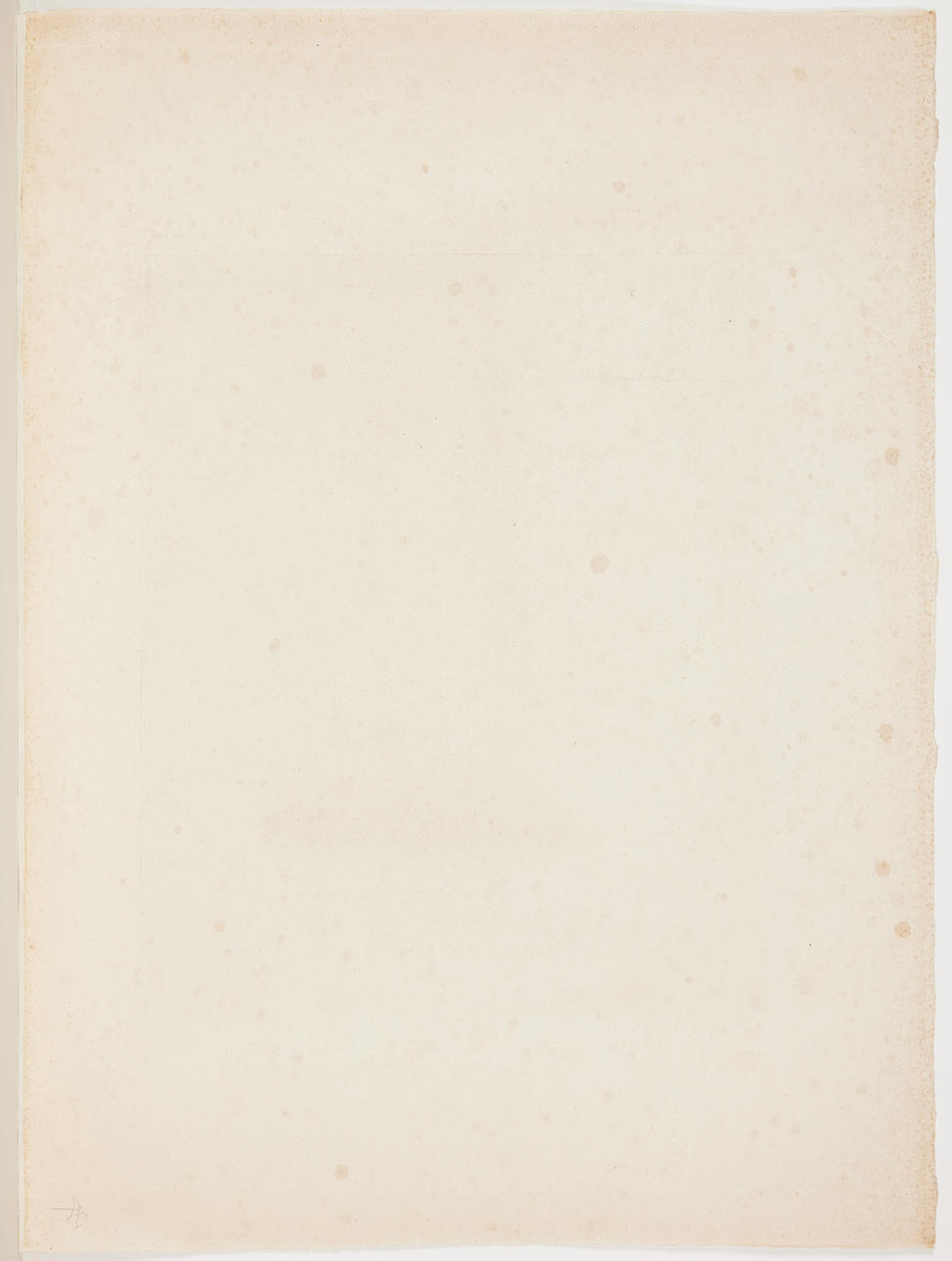 Stockfleckig bis an den Rändern. Knicke an der unteren Kante. Stockfleckig ist ein Schnäffeln. Mit Klebeband entlang der oberen Kante des Blattes montiert.
