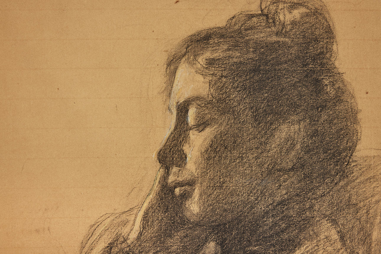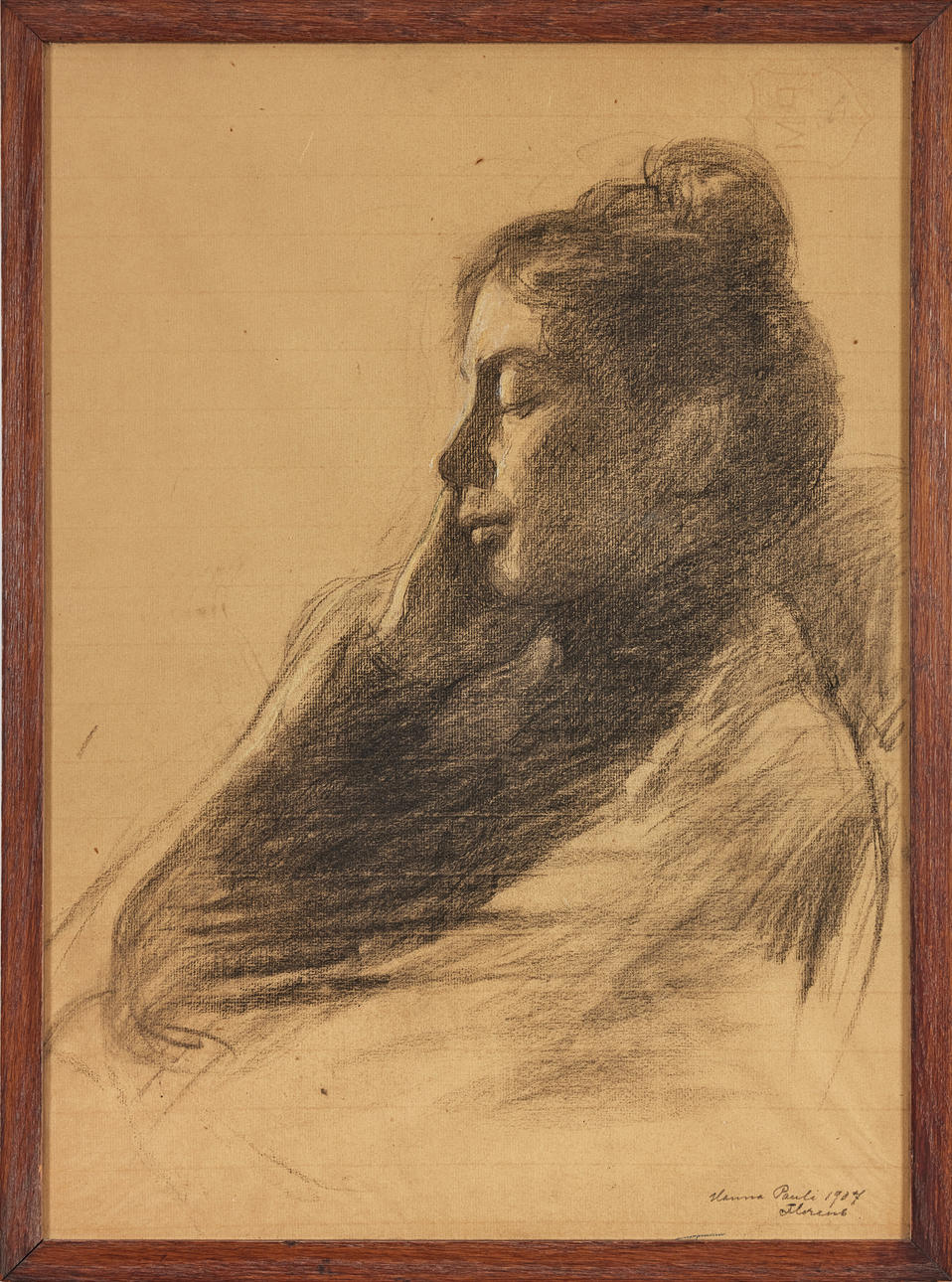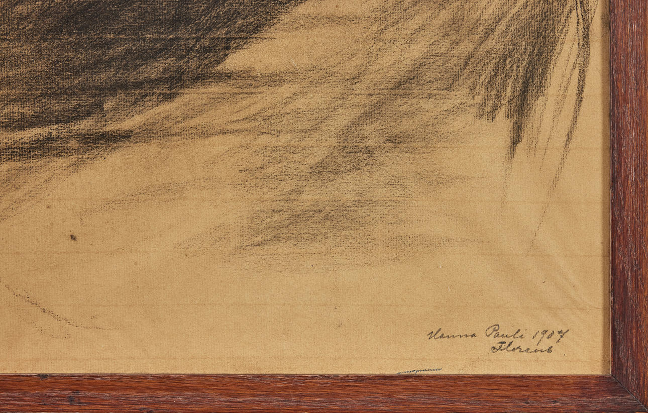 Kohle und Pastell auf Papier, 57 x 41,5 cm. Rahmenmaße 61 x 46 cm. Signiert Hanna Pauli und datiert Florenz 1907.