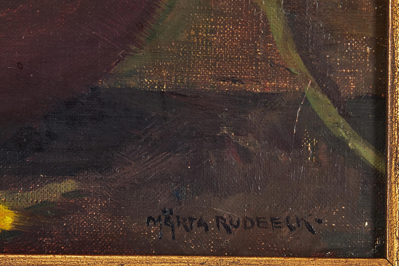Öl auf Leinwand, 22 x 27 cm. Rahmenmaße 30 x 40 cm. Signiert MÄRTA RUDBECK und auch auf der Rückseite signiert und betitelt.