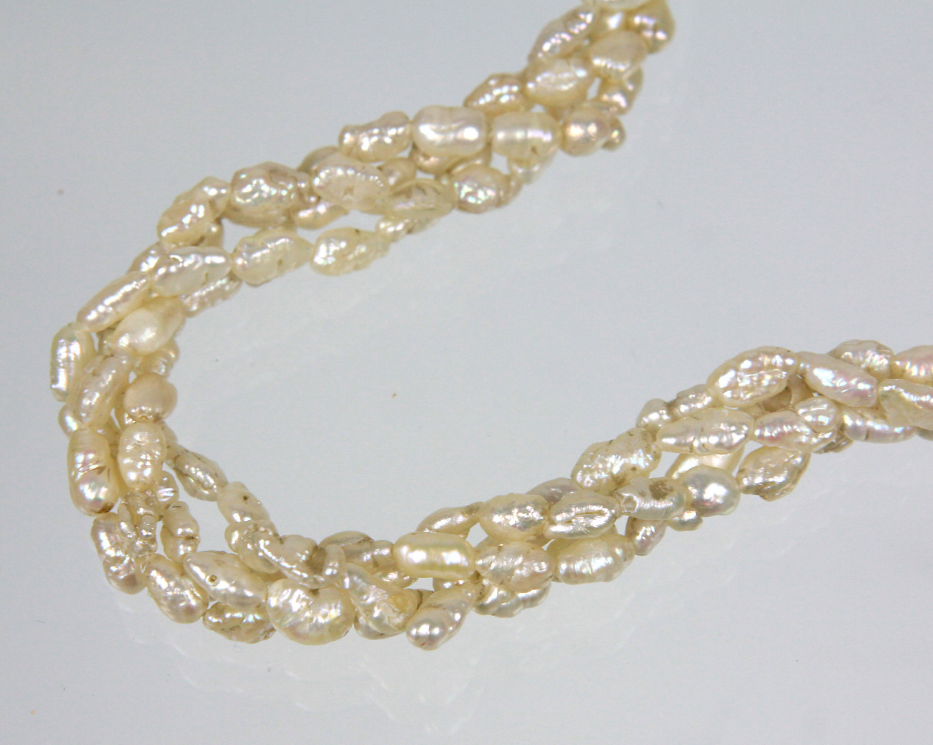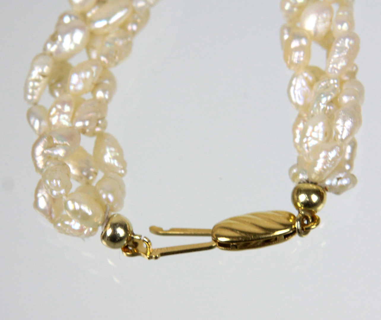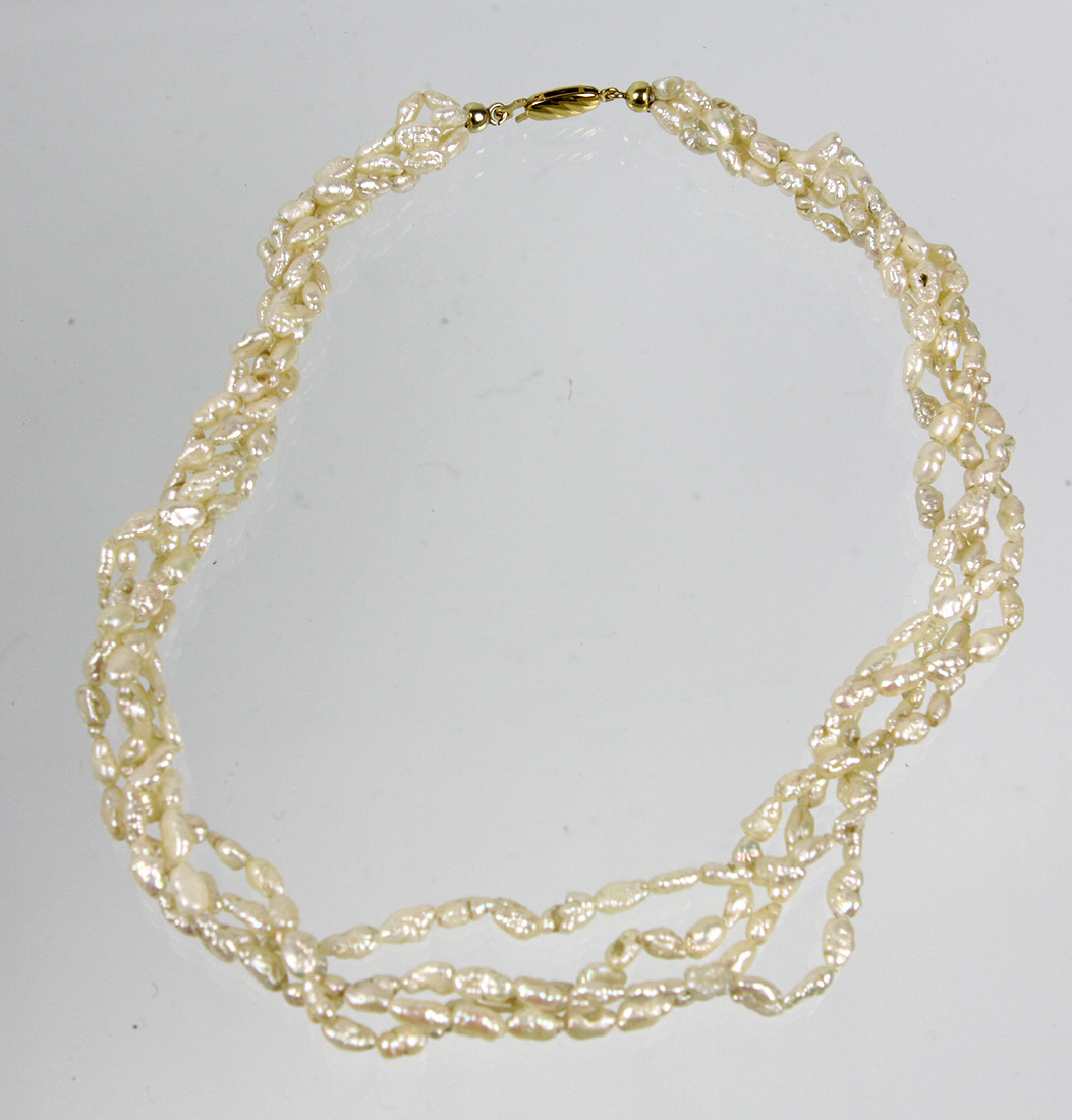 405466. COLLIER, Perlen, vierreihig, Gelbgold 375.
