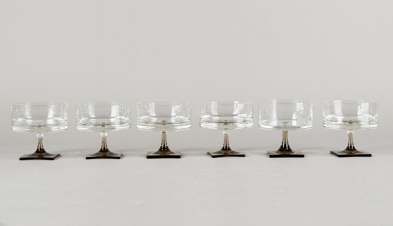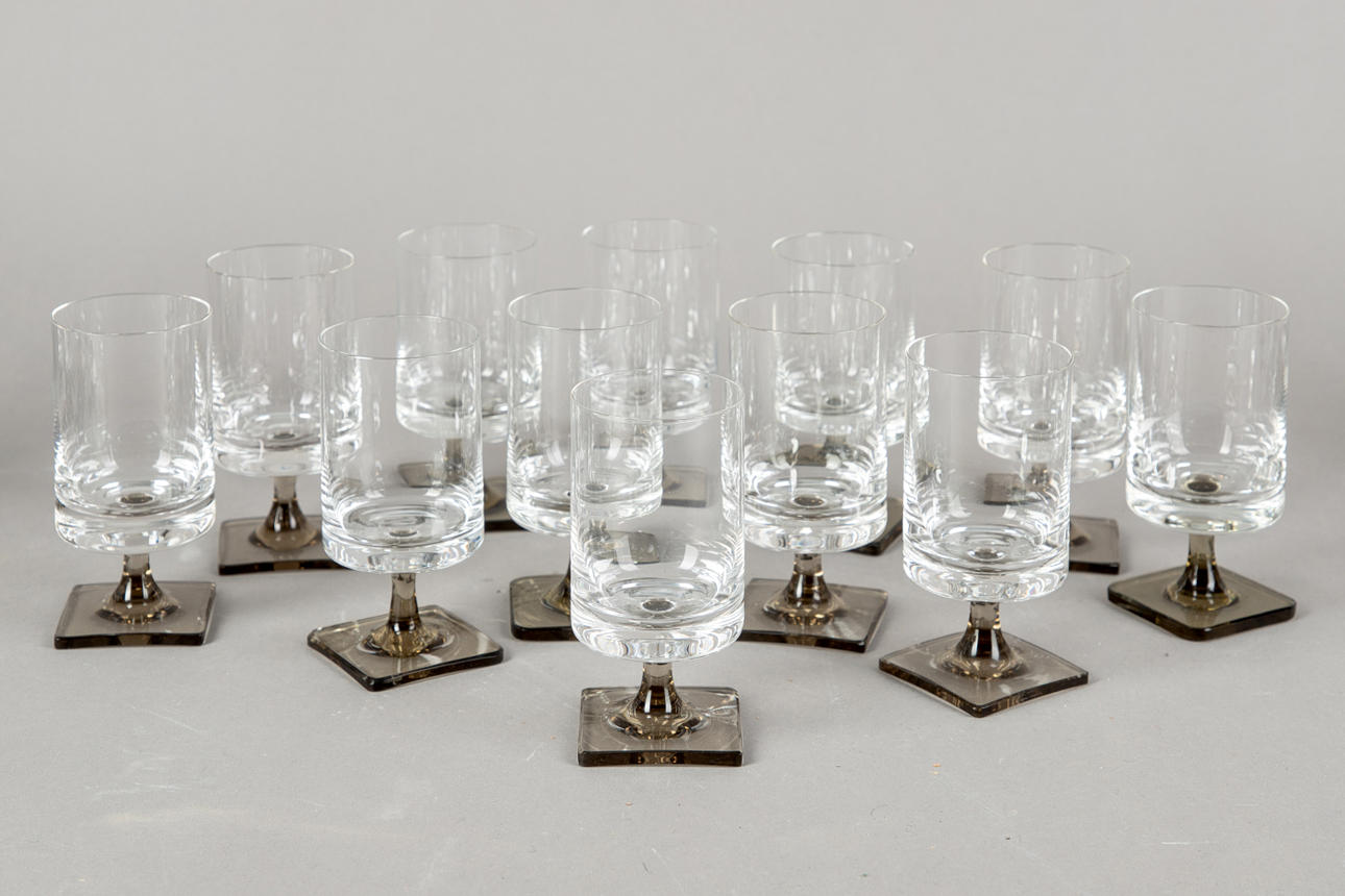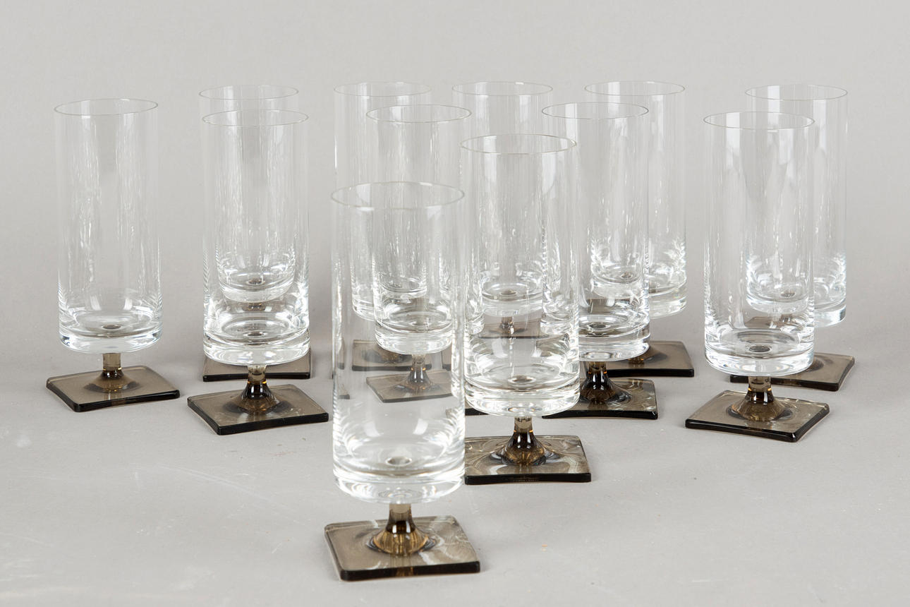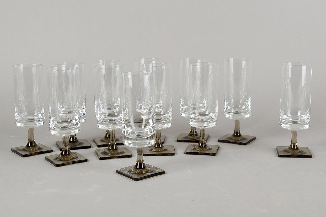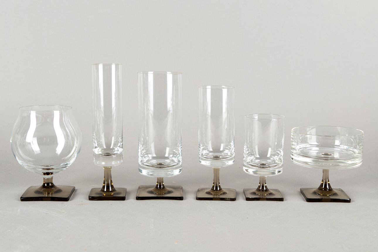 Gläser Set mit Rauchglas Füßen.