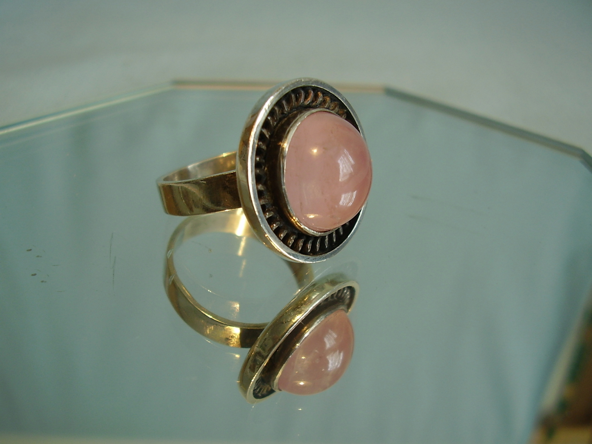 405819. GEORG KRAMER. Designer Ring mit Rosenquarz, Silber 835.