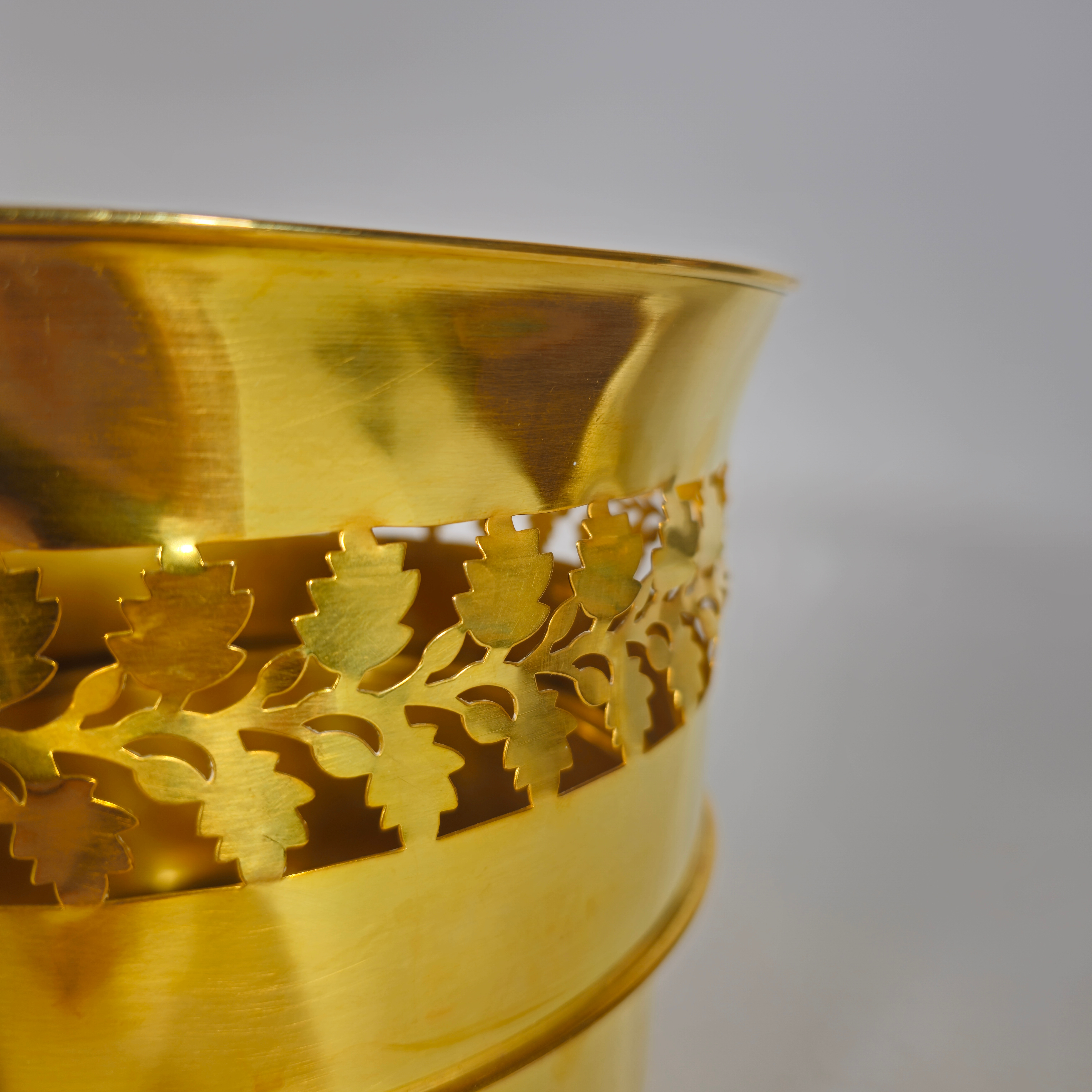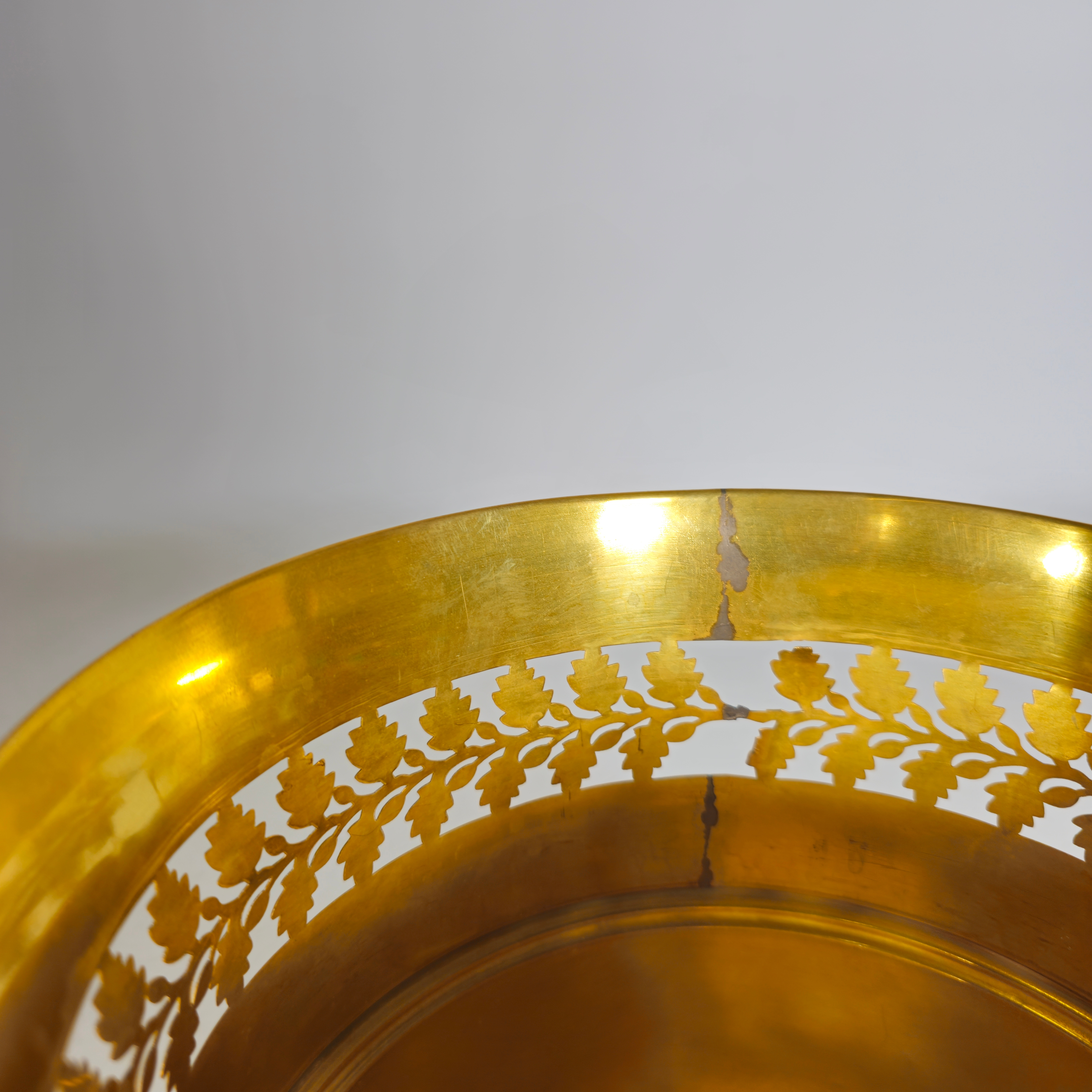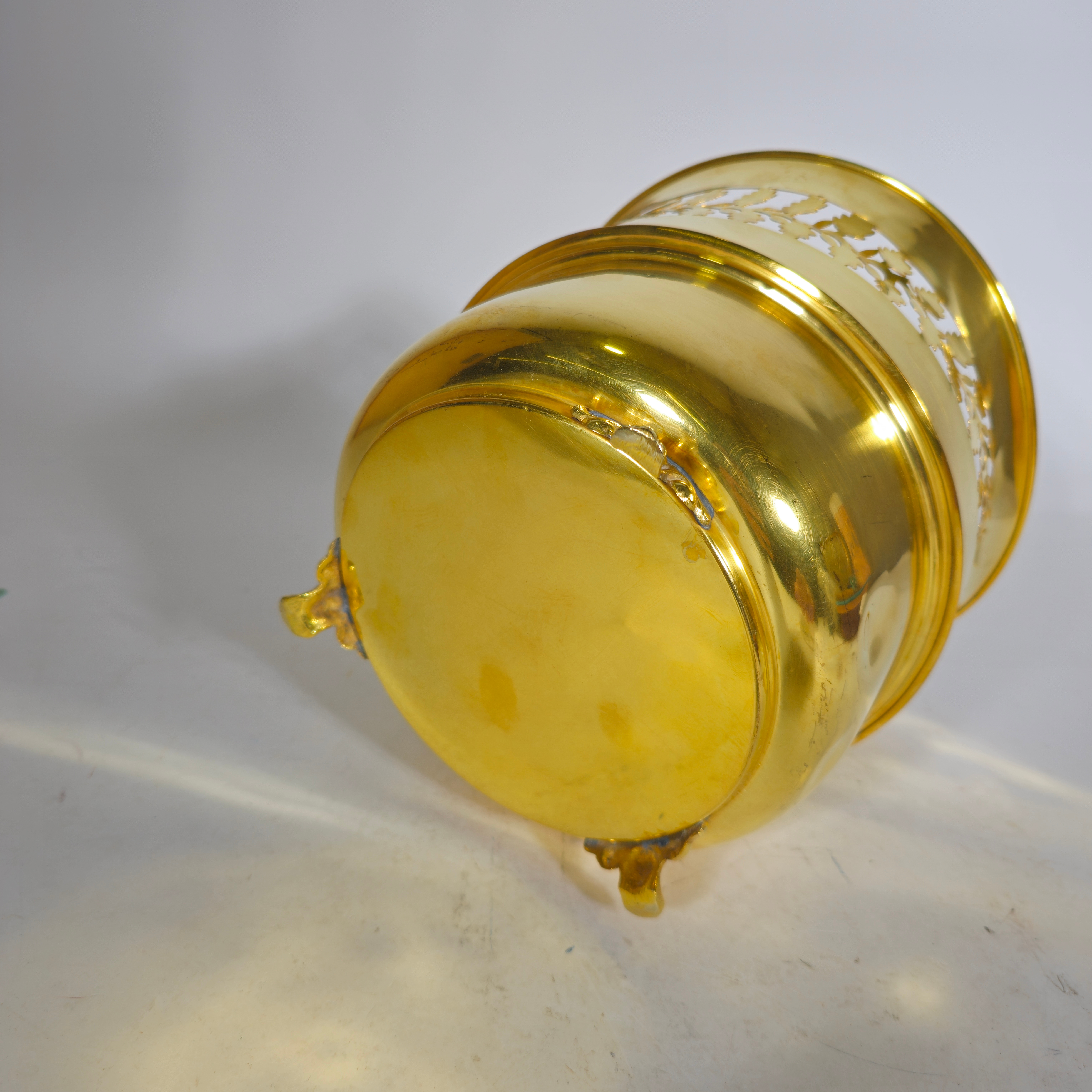 4058276. ALTER BLUMENTOPF AUS MESSING MIT DURCHBROCHENEM RAND.