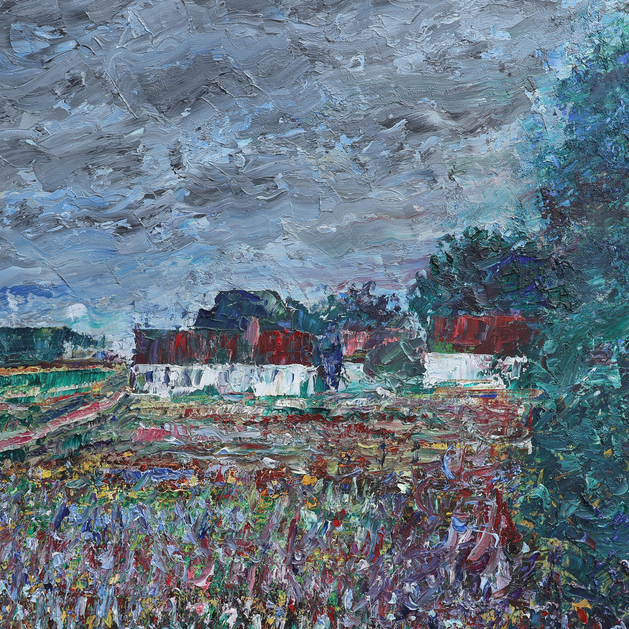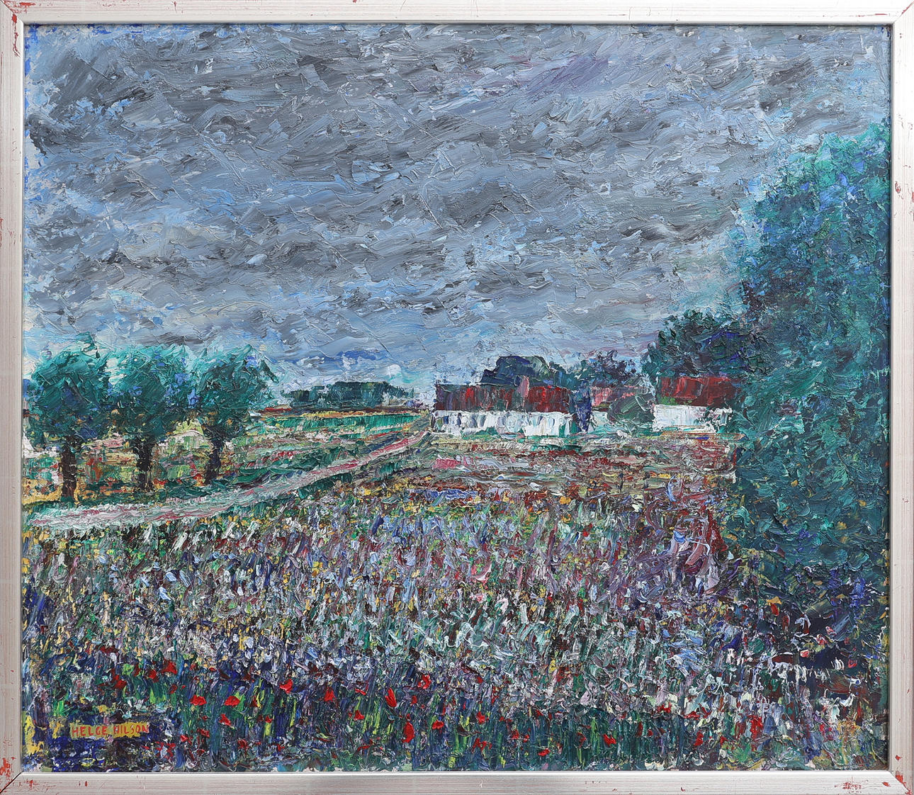 HELGE NILSSON. „BLUMENWIESE“, ÖL AUF HOLZ.
