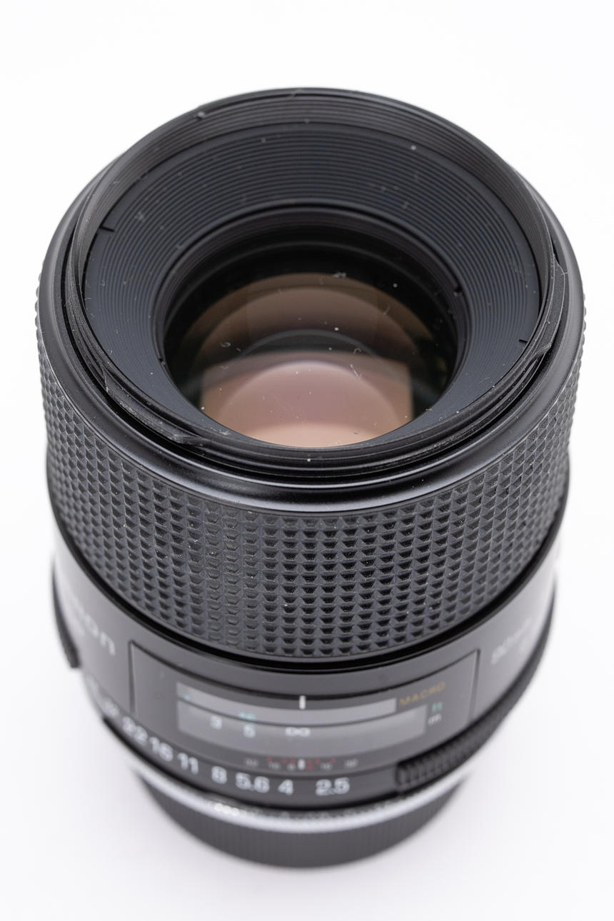 Die Linsen sind klar und frei von Kratzern, Fokus und Blende laufen leichtgängig. Die Blende des Objektives funktionierte zum Zeitpunkt der Prüfung und ist frei von Öl.