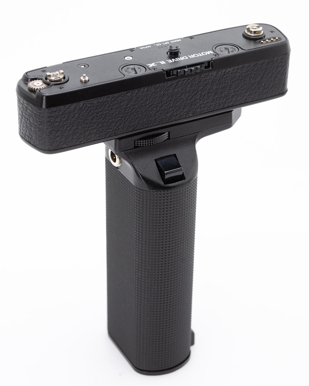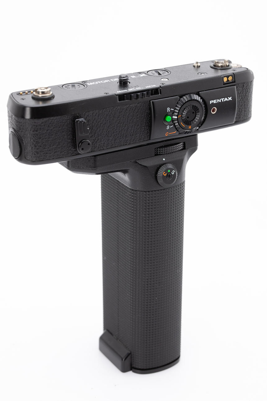 Der Pentax Motor Drive LX mit Batterie Grip M ist äusserlich in einem gutem Gebrauchtzustand mit minimalen Gebrauchtspuren. Im Einzelbild Betrieb wurde die Kamera ausgelöst und der Film transportiert. In Serienbild konnte die Kamera nicht ausgelöst werden.