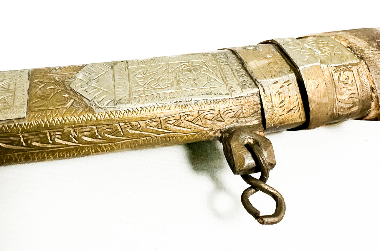 Kostümmesser, Halterung aus Holz und Messing, orientalisch.
