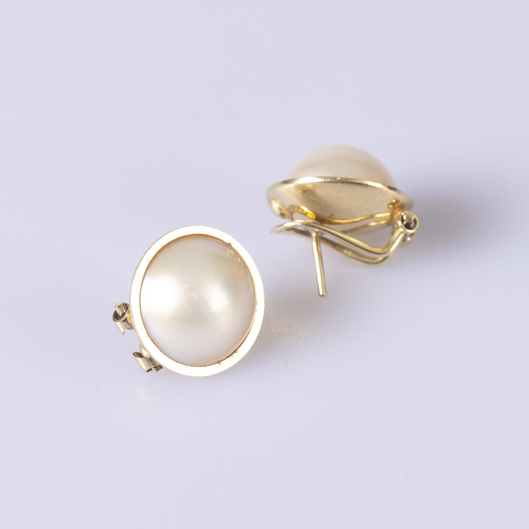 4067240. OHRSTECKER MIT CLIP, 2 Mabeperlen, 585er Gelbgold.
