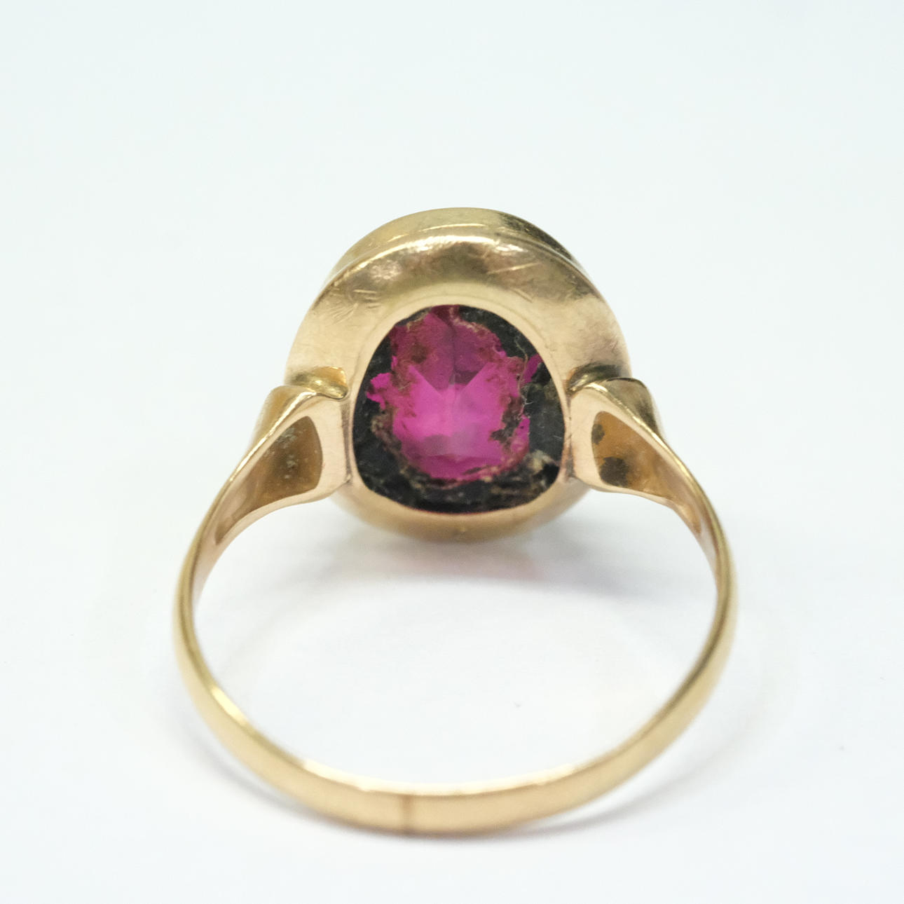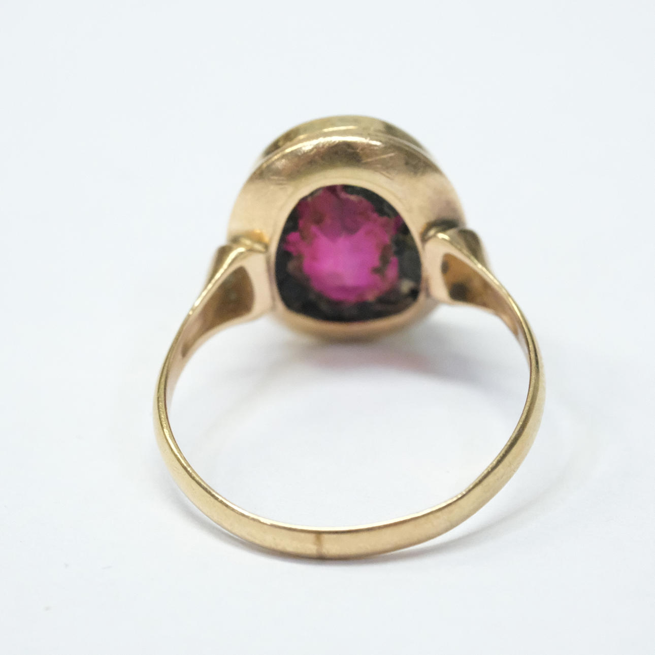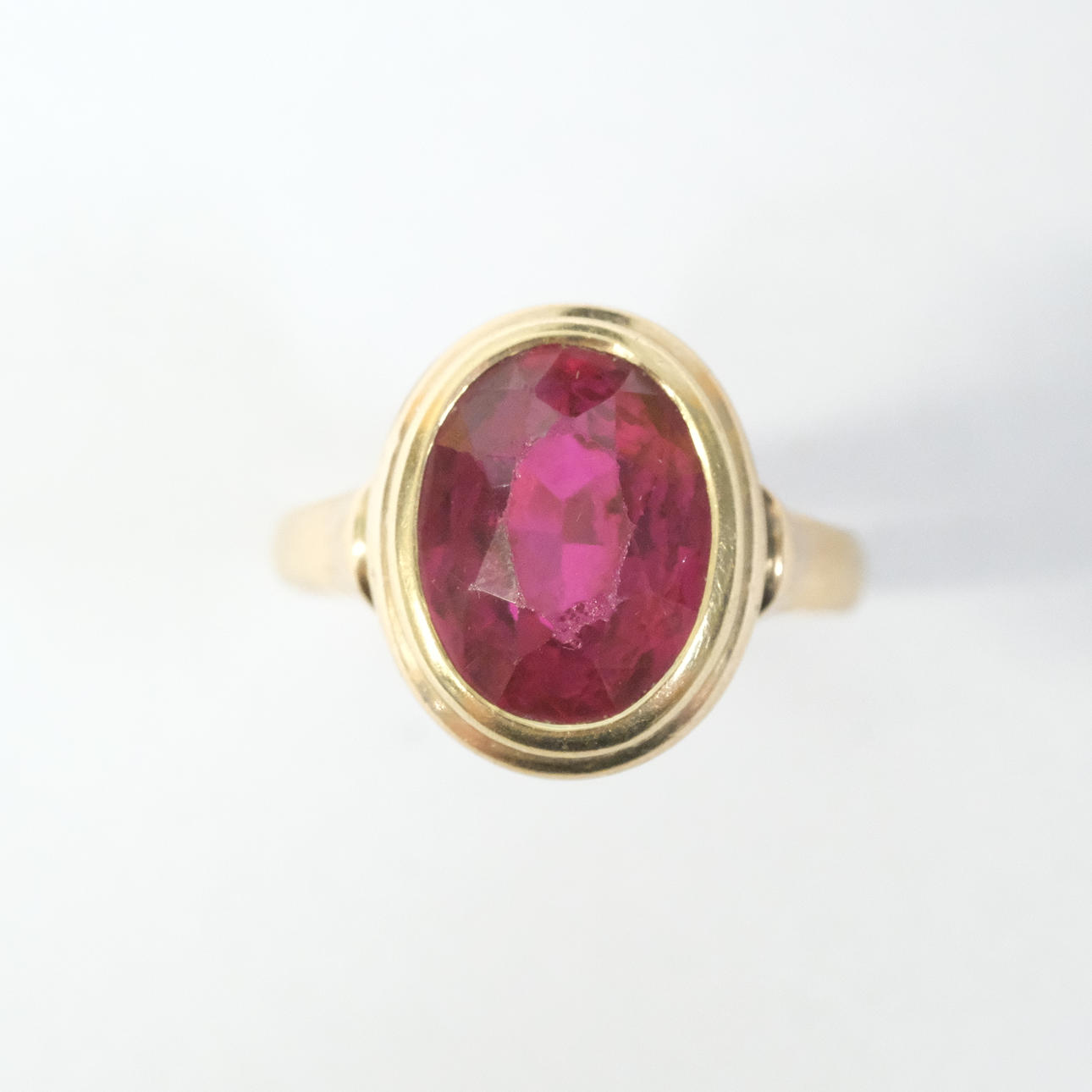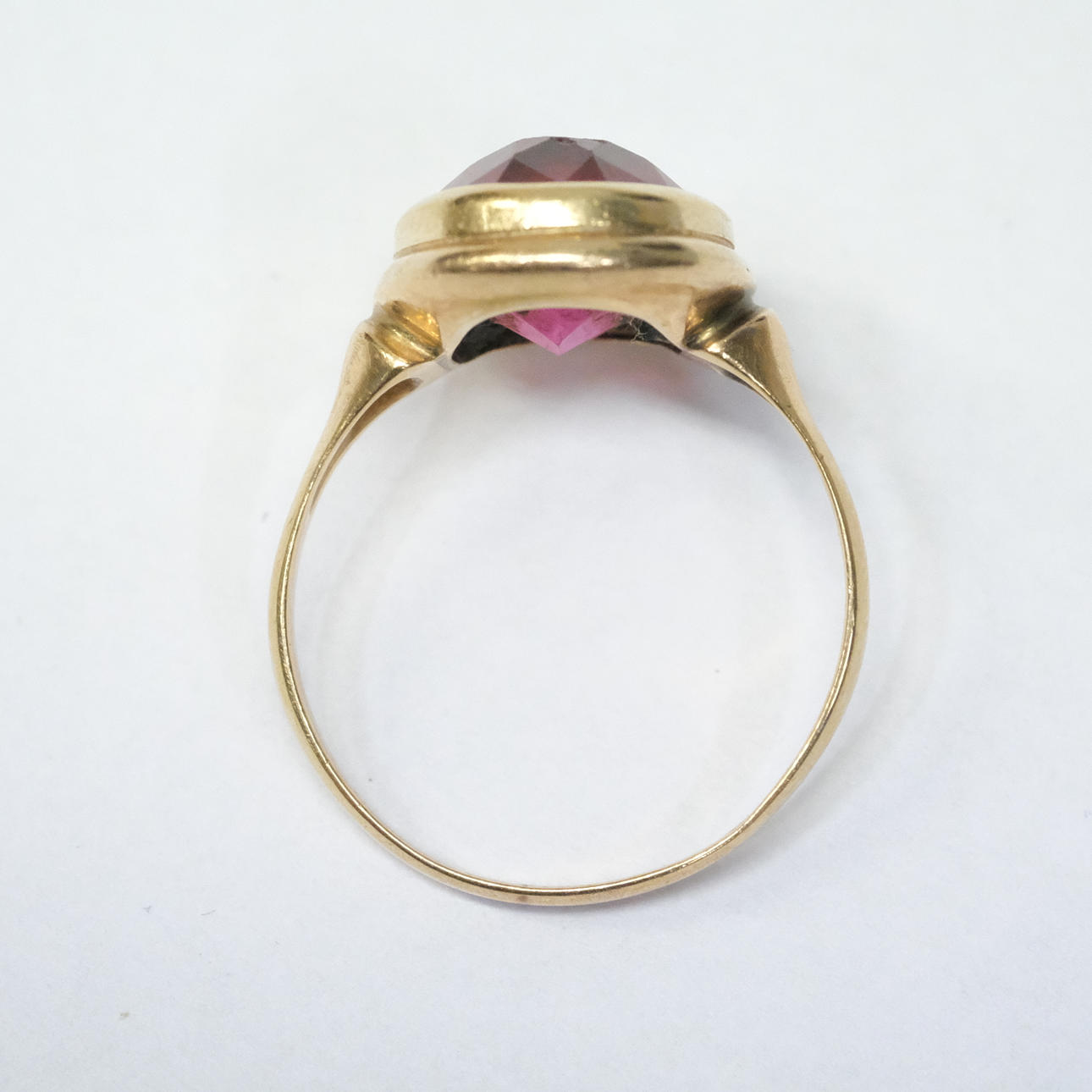 4073294. RING MIT ROTEM STEIN, 14 KARAT GOLD.