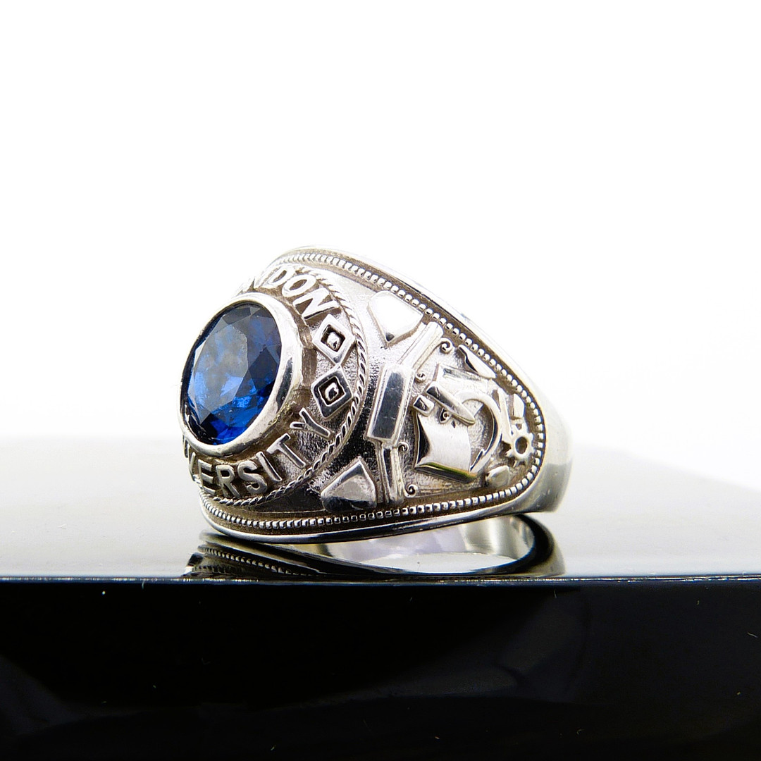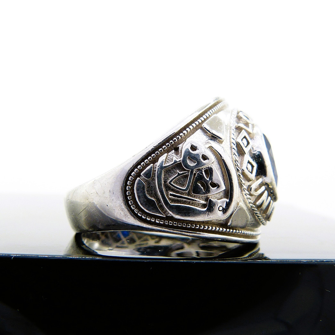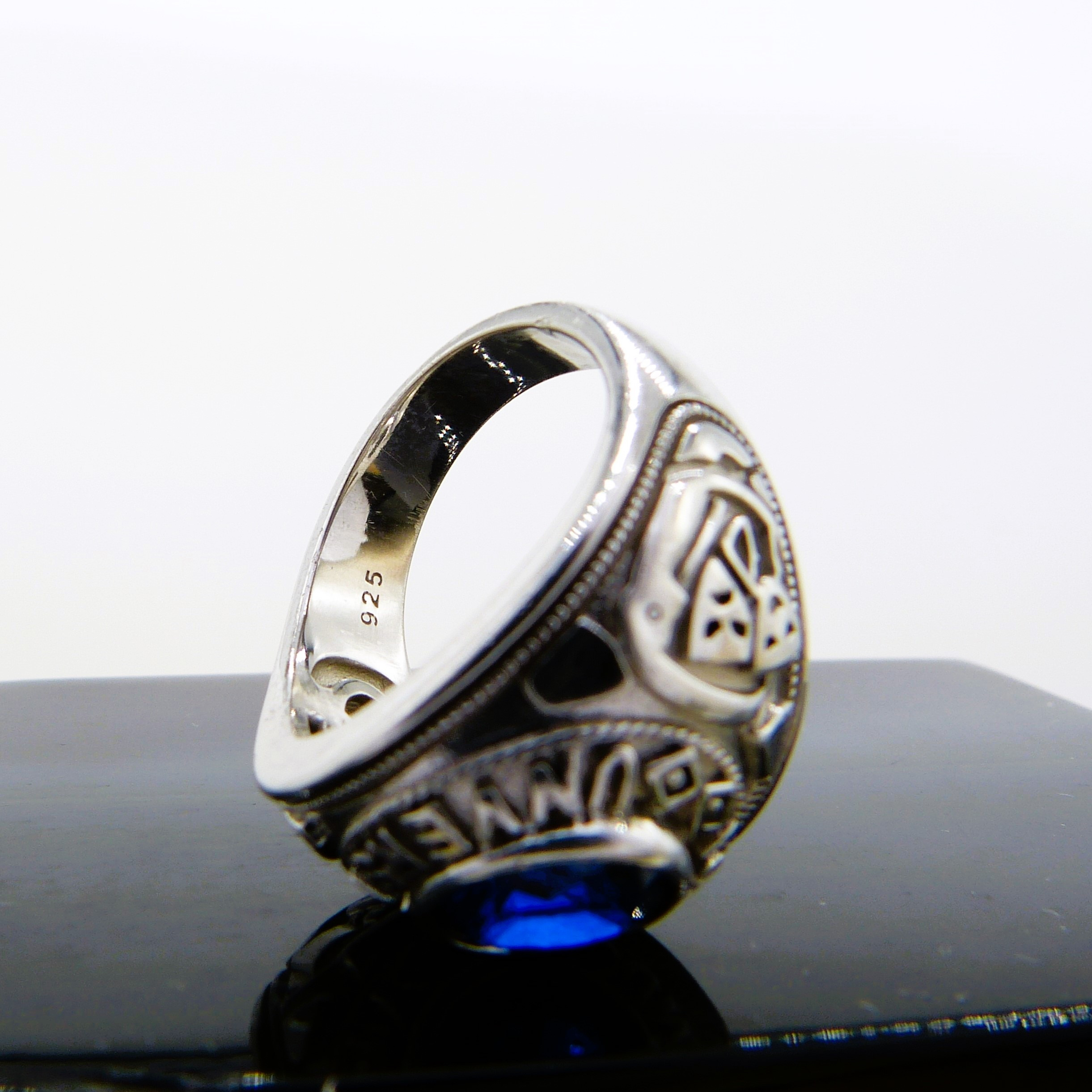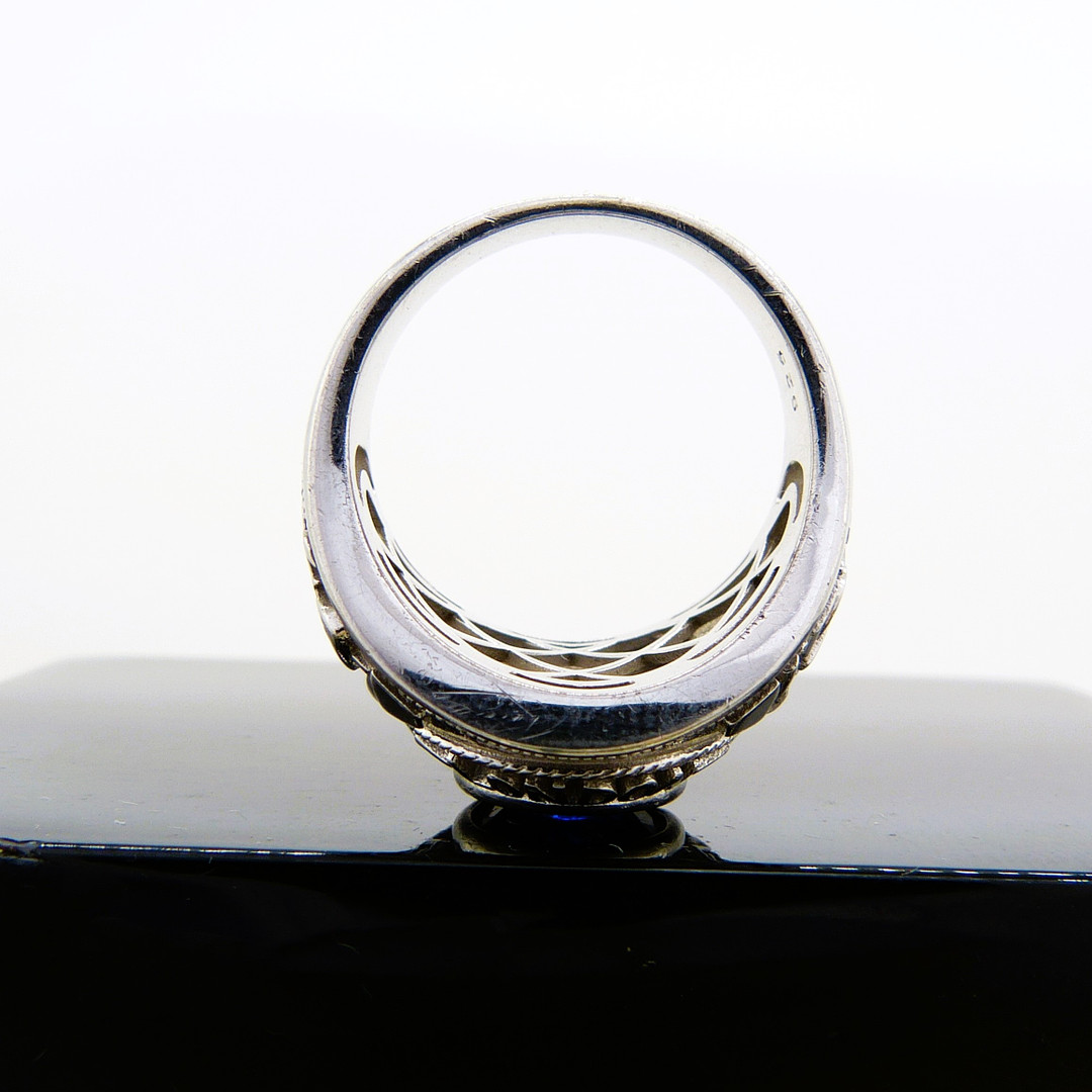 4073323. Silberner Siegelring mit blauem Stein.