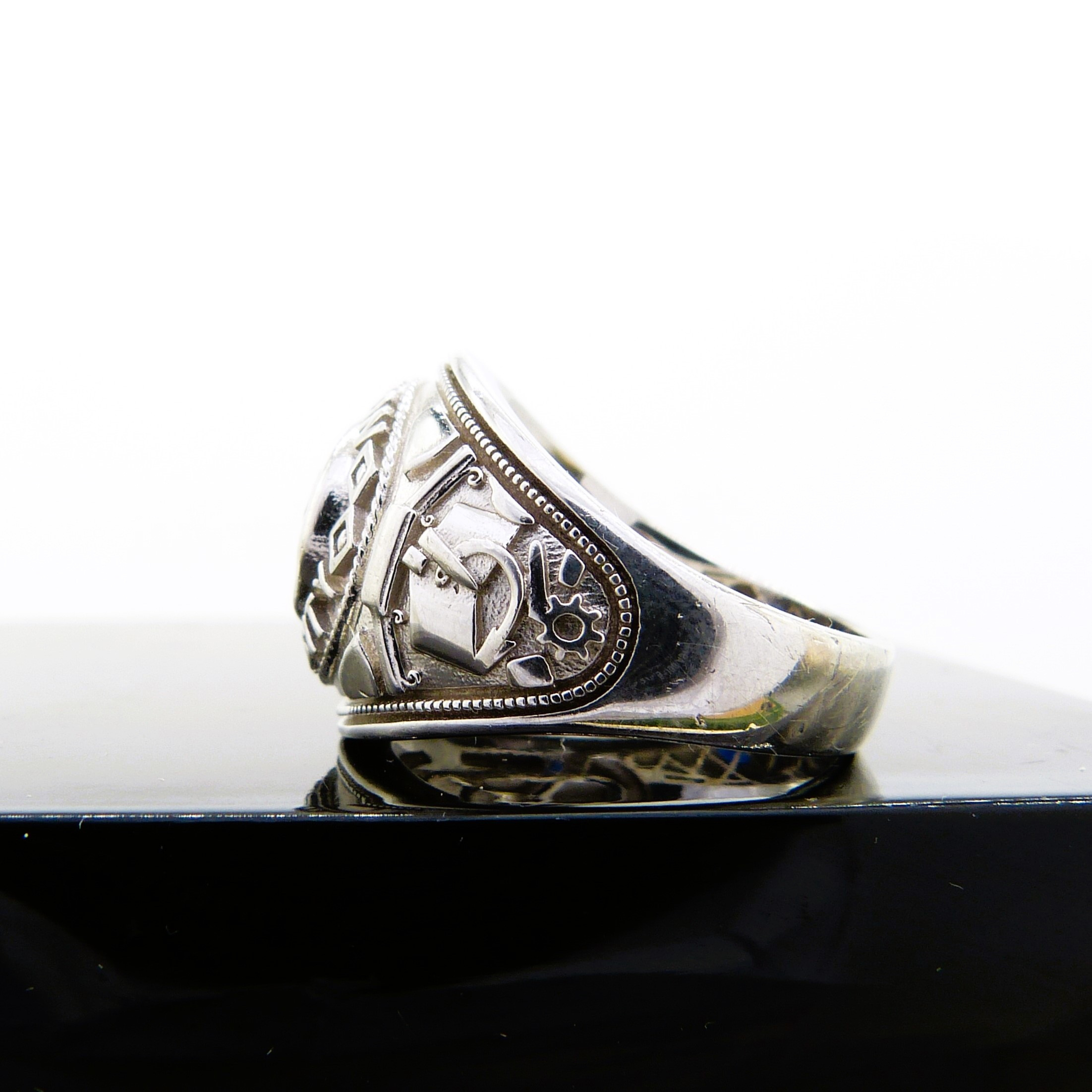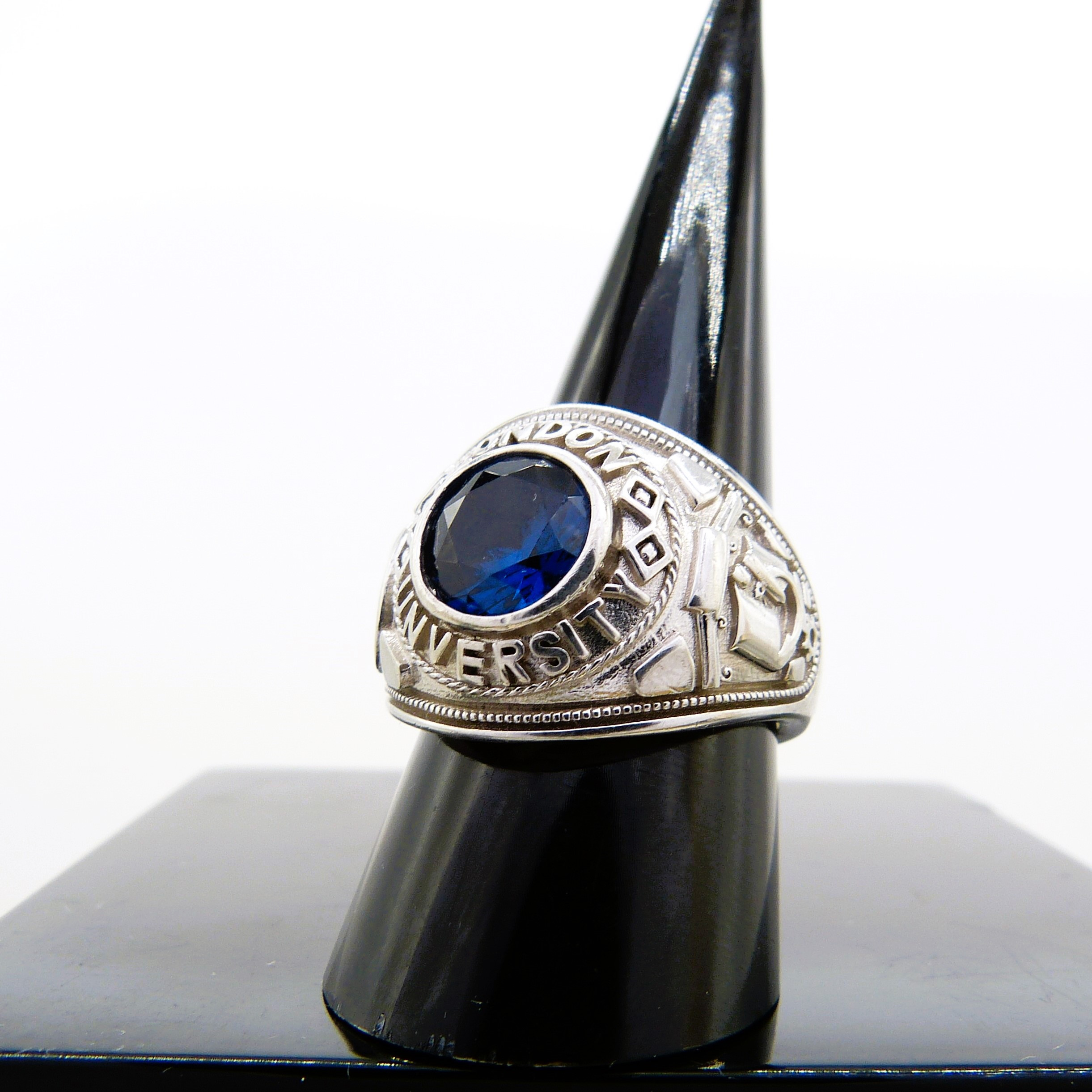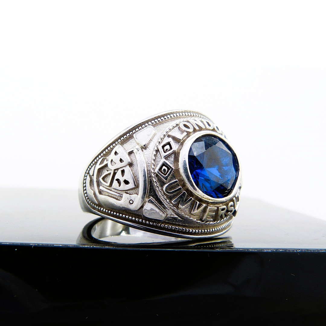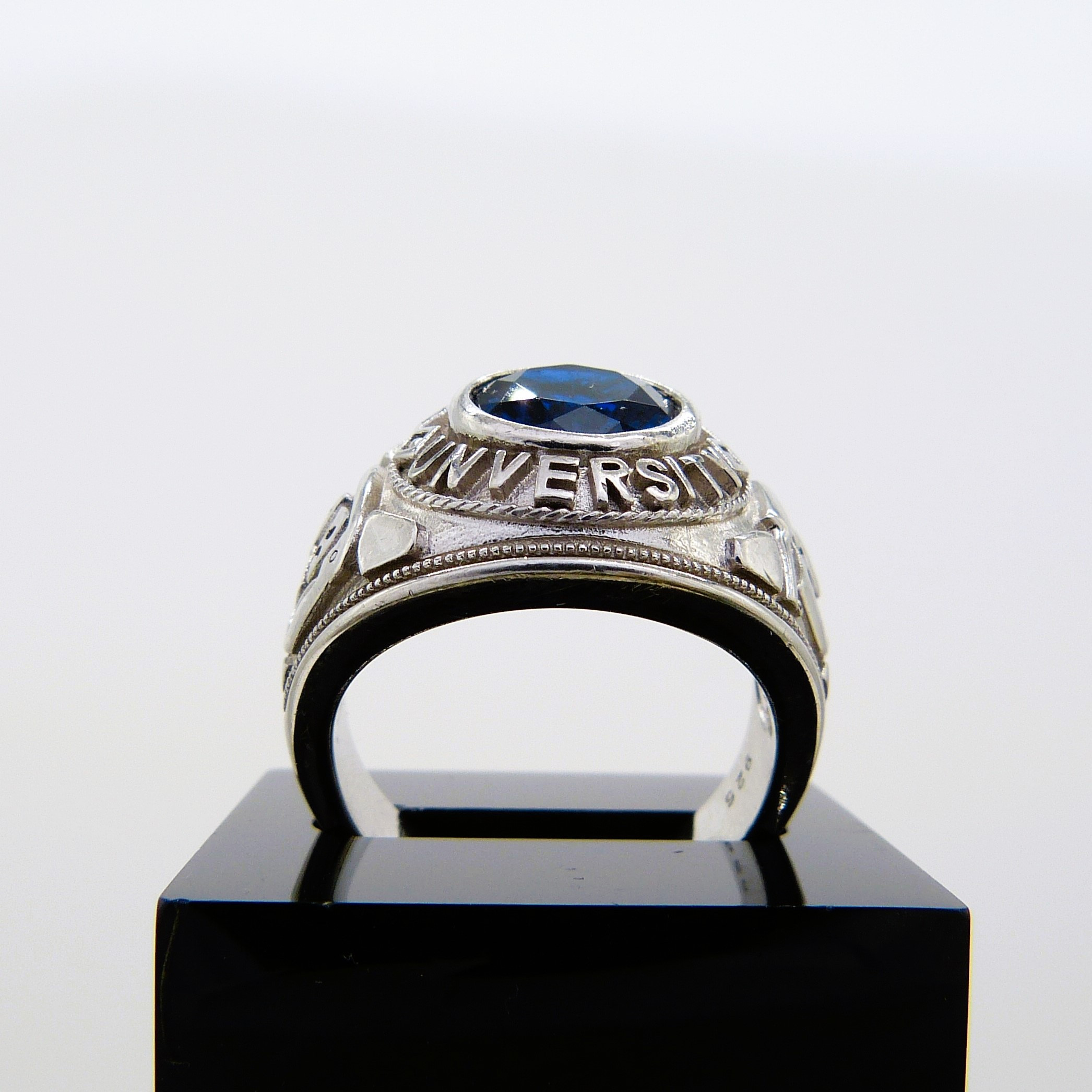4073323. Silberner Siegelring mit blauem Stein.