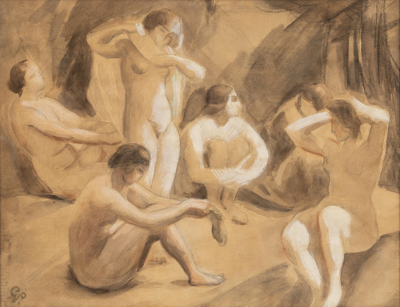 4074719. GEORG PAULI. Nackte Damen, Mischtechnik auf Papier, monogrammiert.