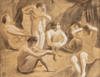Badeszene. Bildgröße im Rahmen 35x45 cm. Rahmenmaße 49x59 cm.