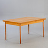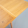 Konstruktion aus Eichenholz, teilfurniert. 2 integrierte Erweiterungsplatten á 60 cm zum herausziehen.