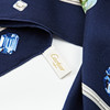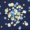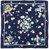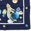 Gewebter Jaquard, Muster mit Edelsteinen und Schmucktieren auf blauem Grund, handgerollter Saum, Aufschrift „Cartier Paris“, Maße ca. 86x84 cm.