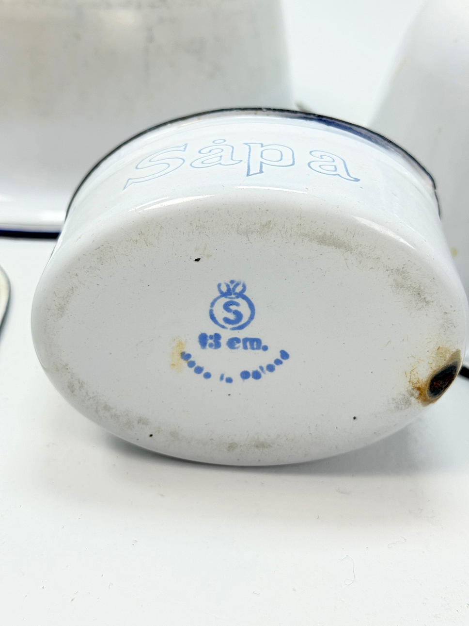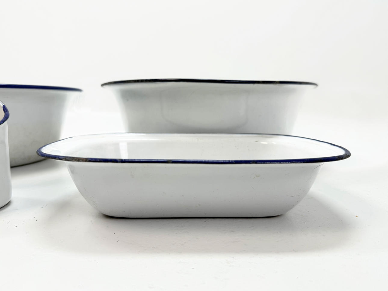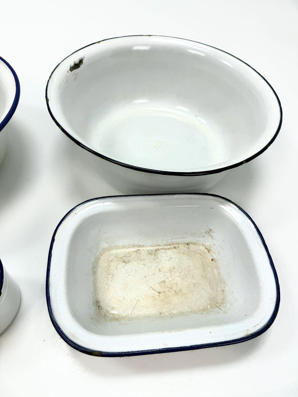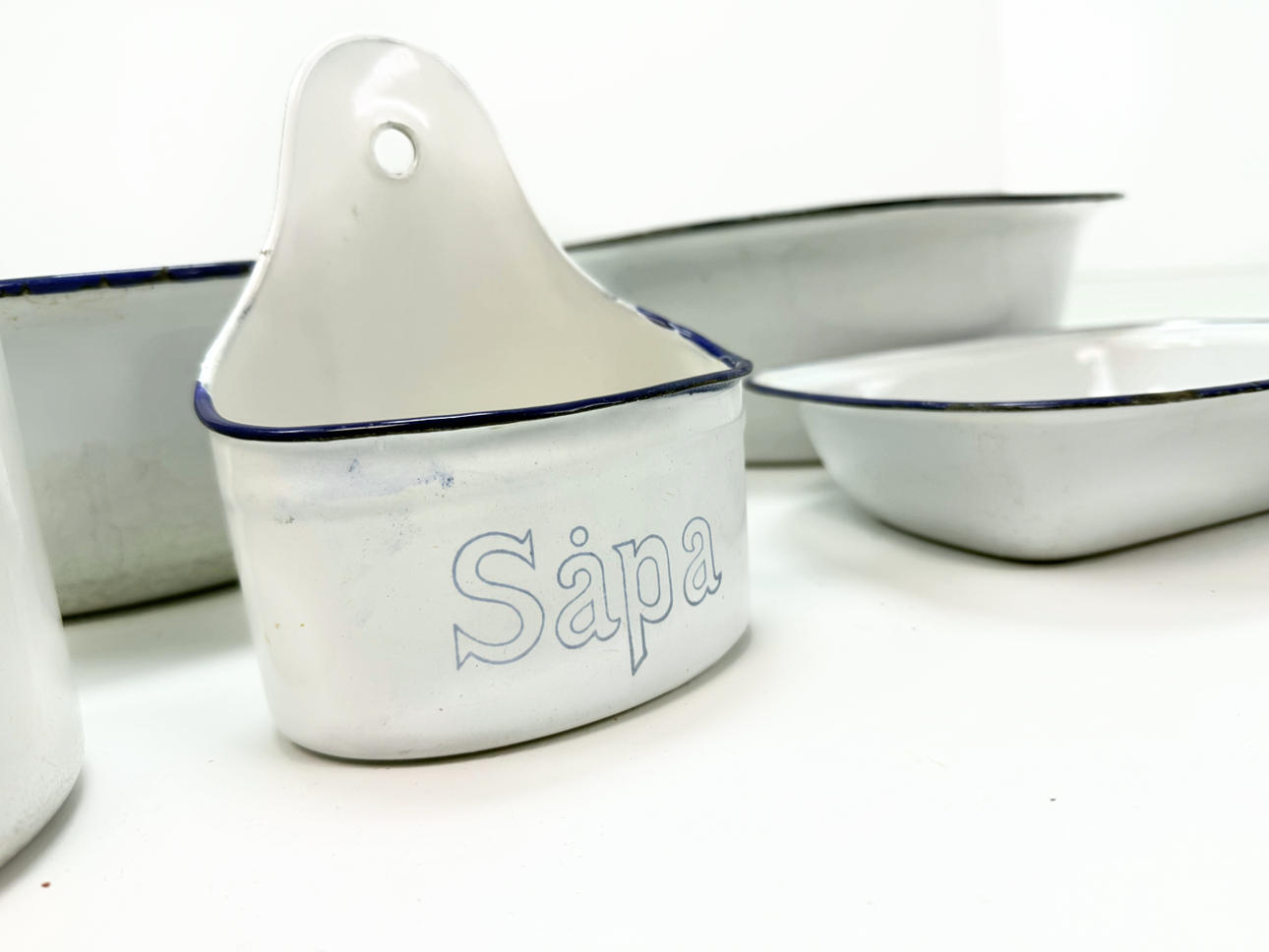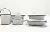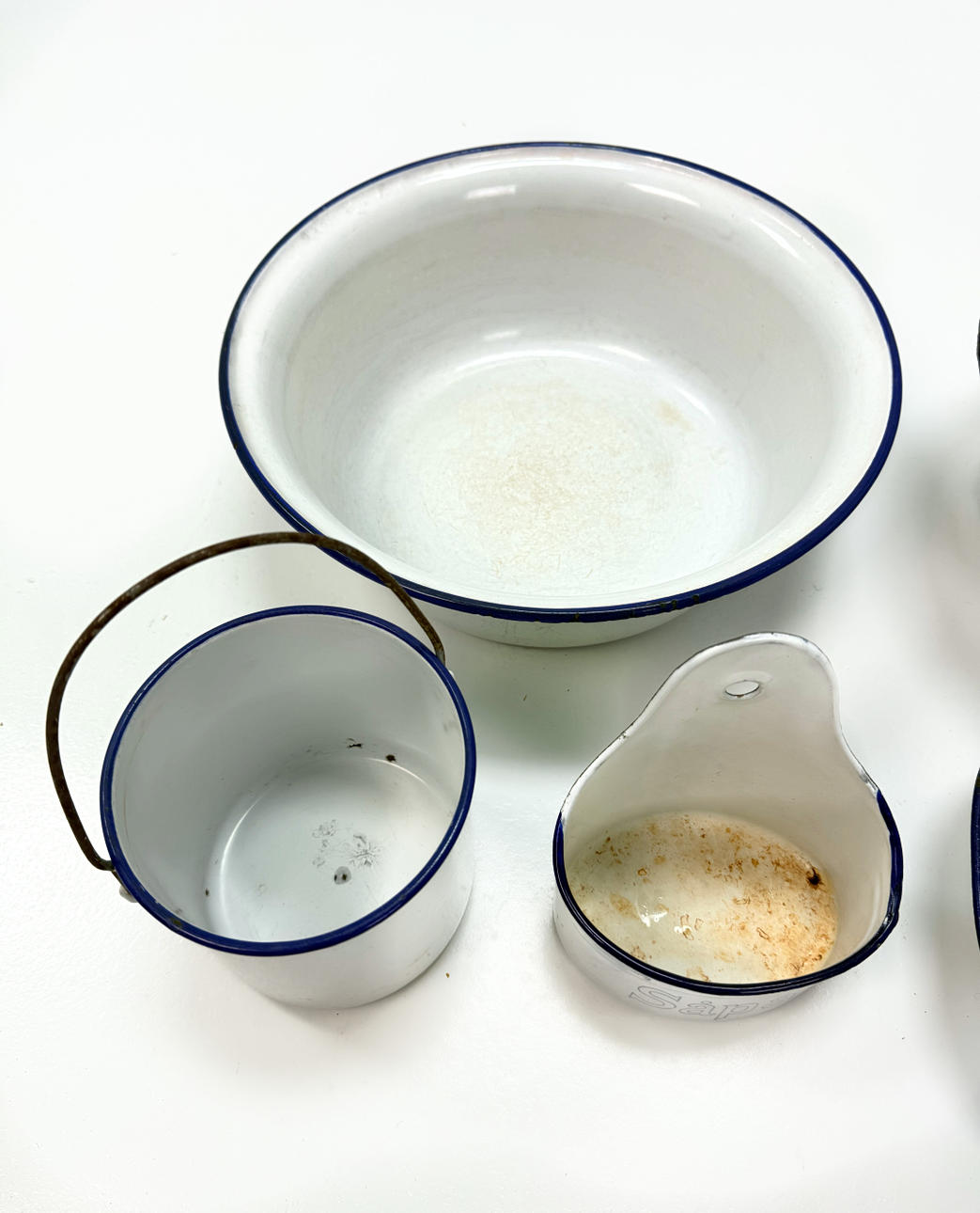 WASCHBECKEN, SEIFENBECHER, EIMER 5 Stück, Emaille.