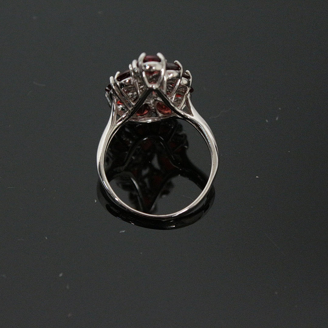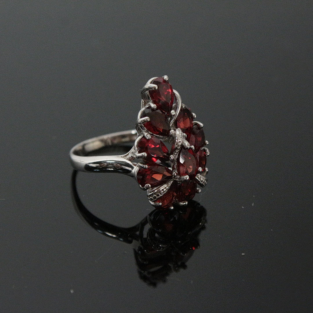 Ring mit blutroten Granaten, 925er Silber rhod.,