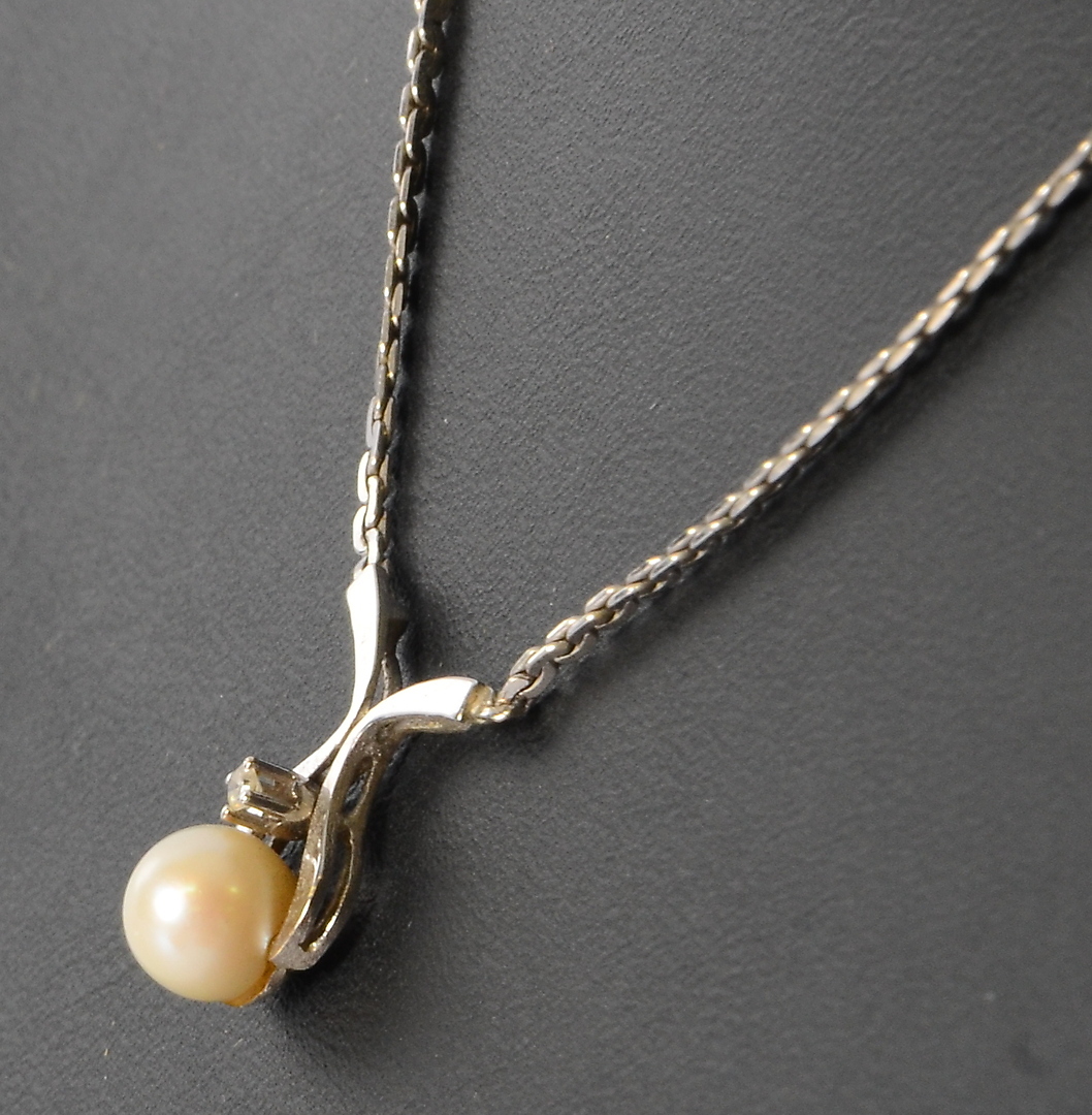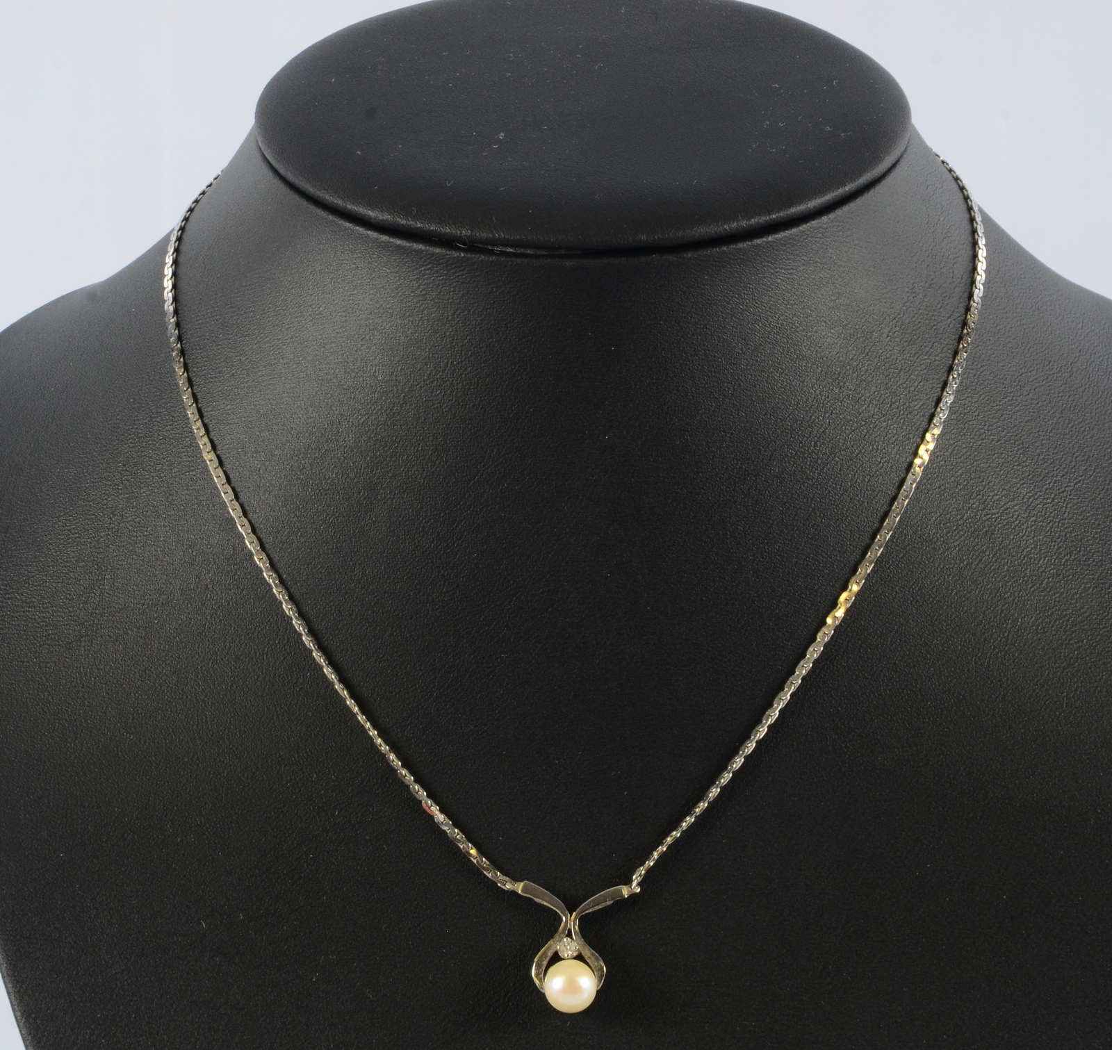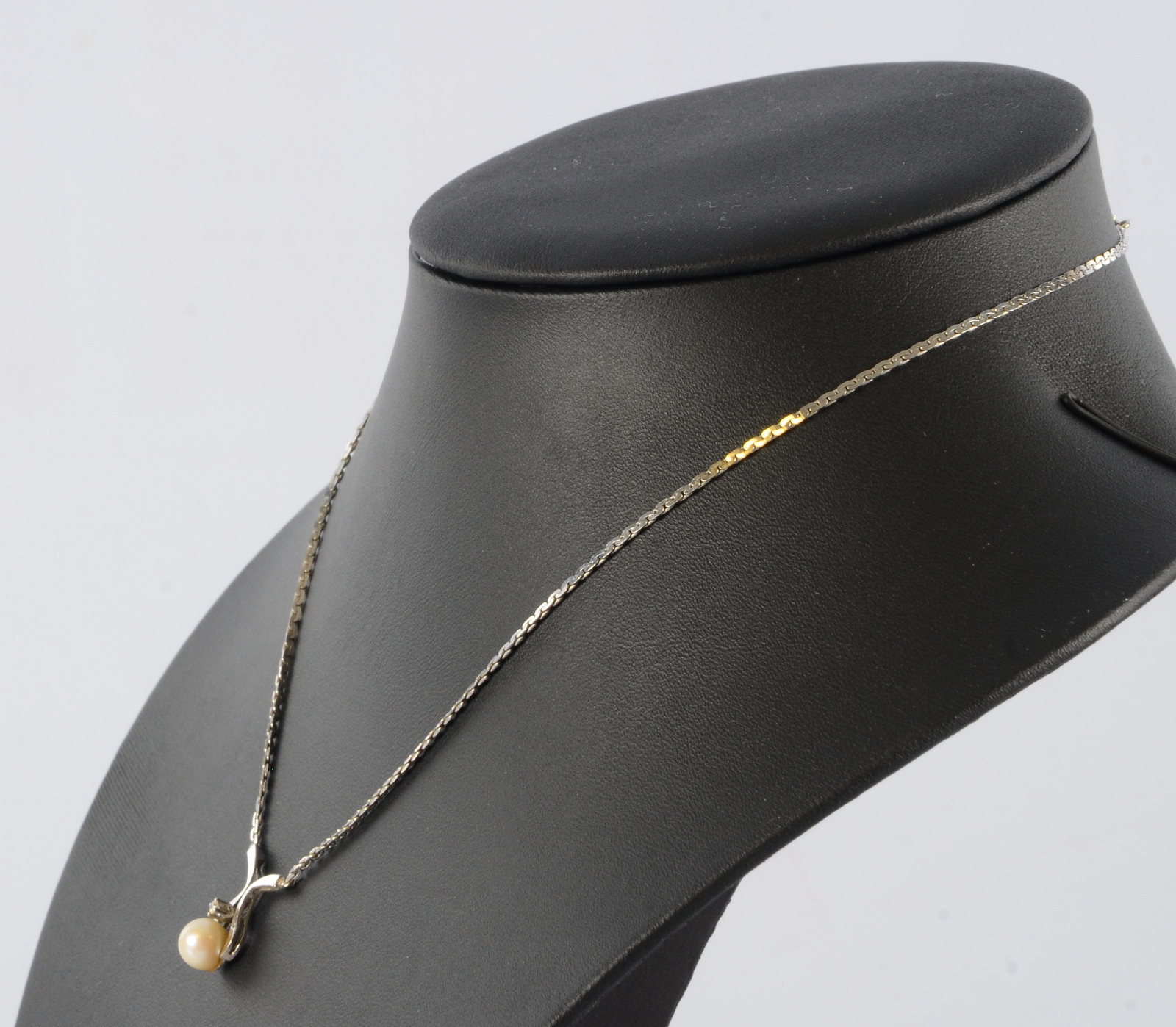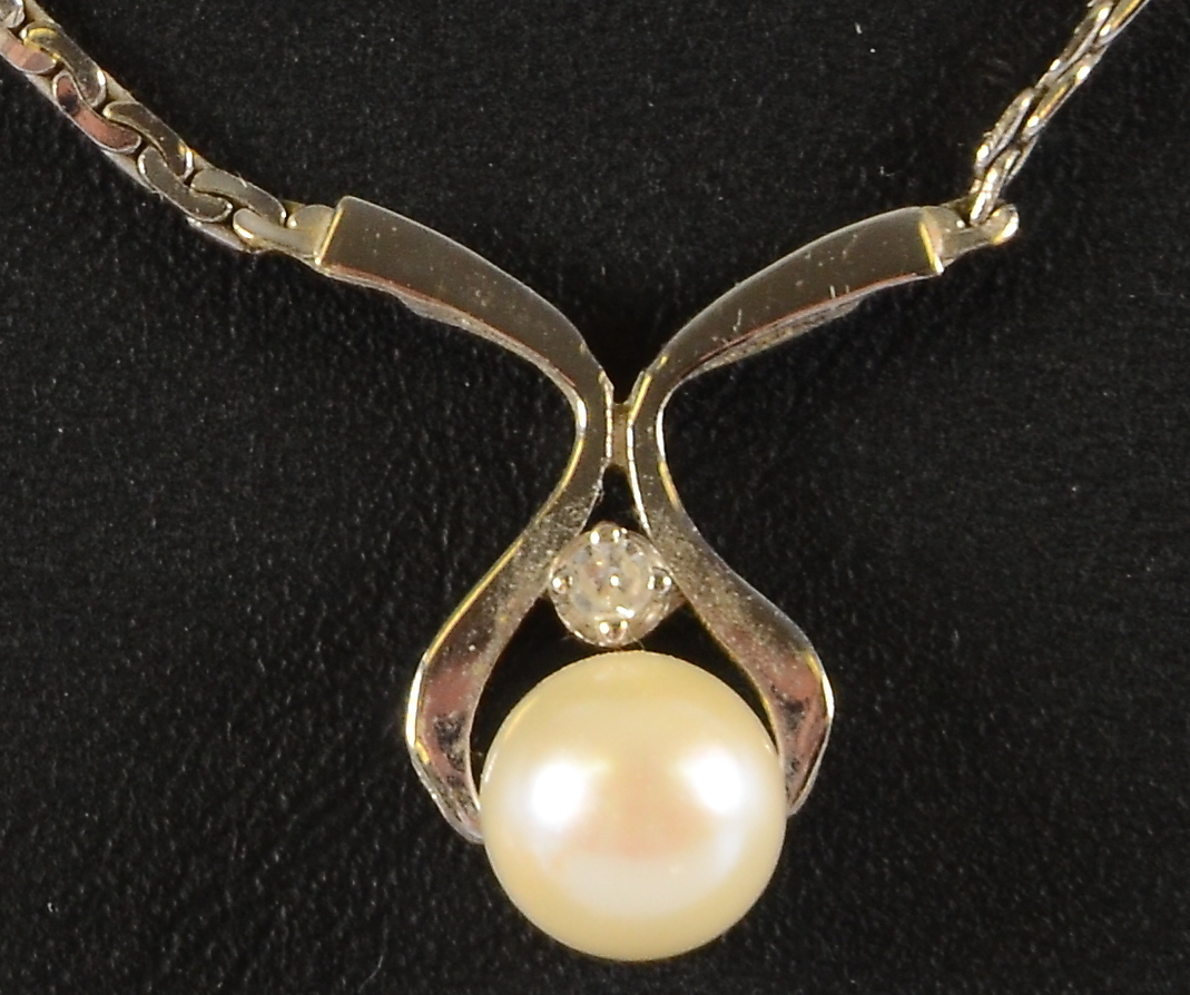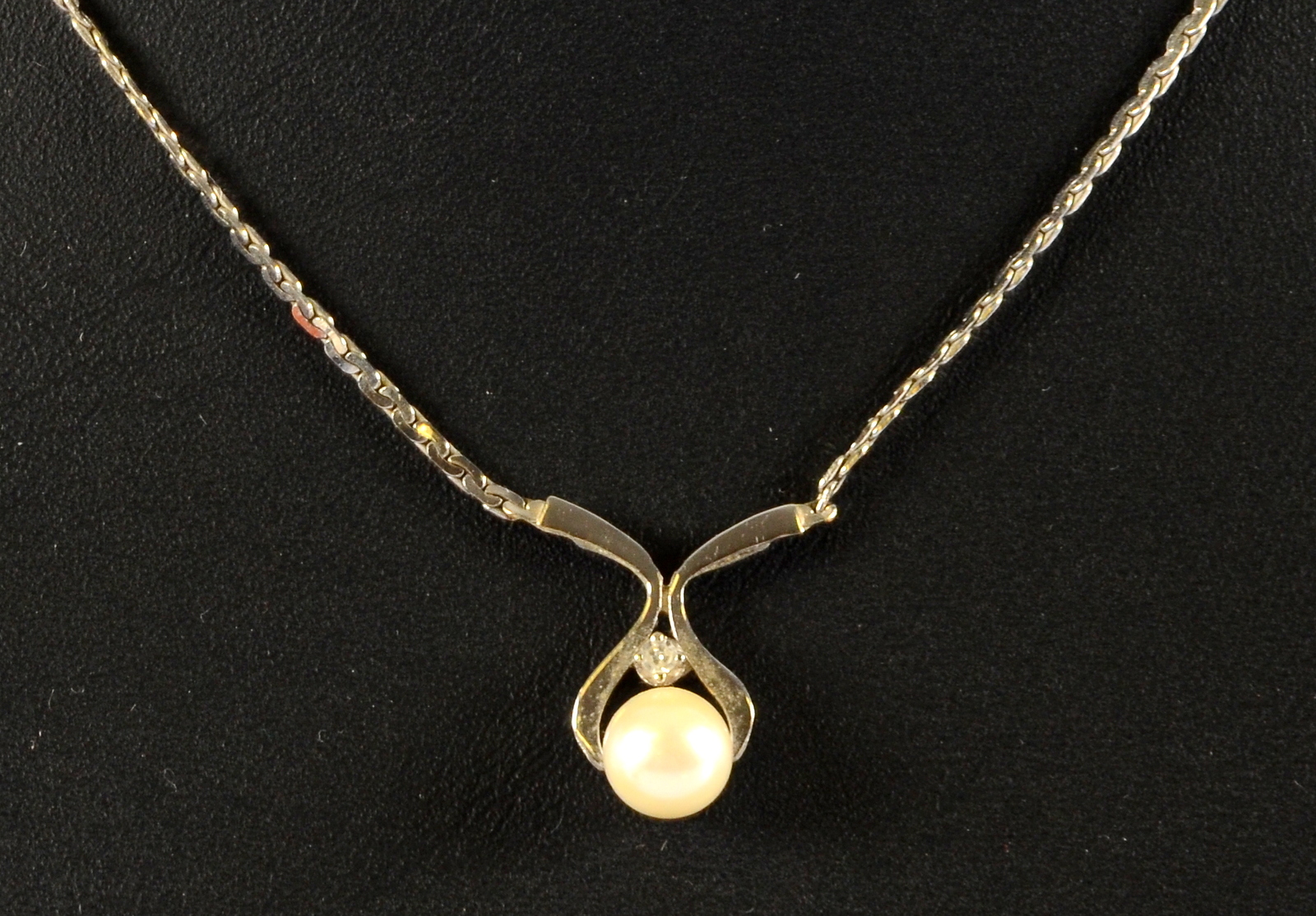 408293. DIAMANT-COLLIER MIT PERLE, 18K.