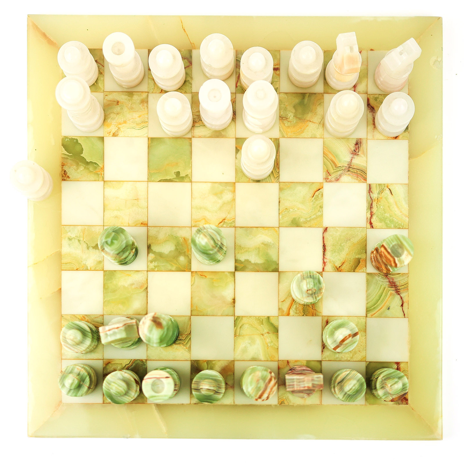 4084294. EIN SCHACHSET AUS ONYX UND WEISSEM MARMOR.