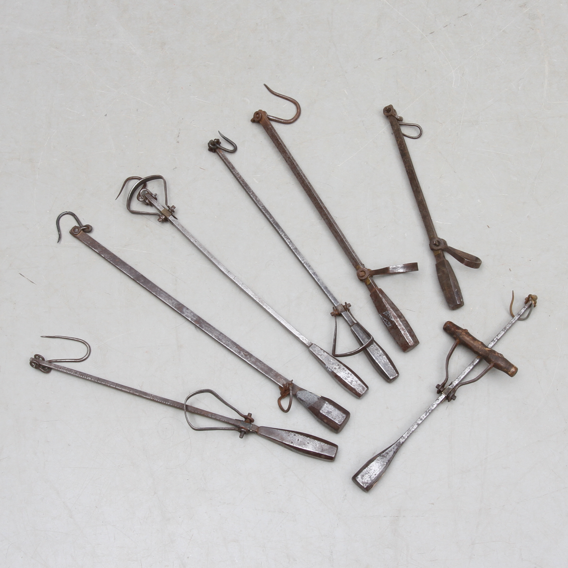 408572. BESMAN, 7 Stück, Eisen, datiert 1810-1855.
