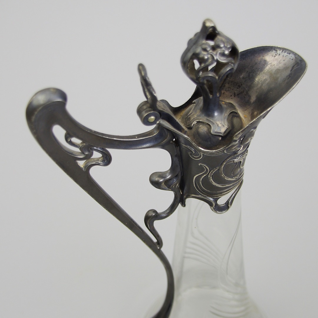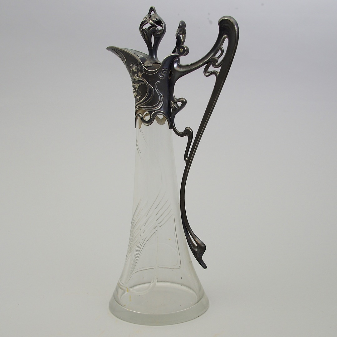 408674. KRUG MIT Deckel, Zinn/Glas, Jugendstil.