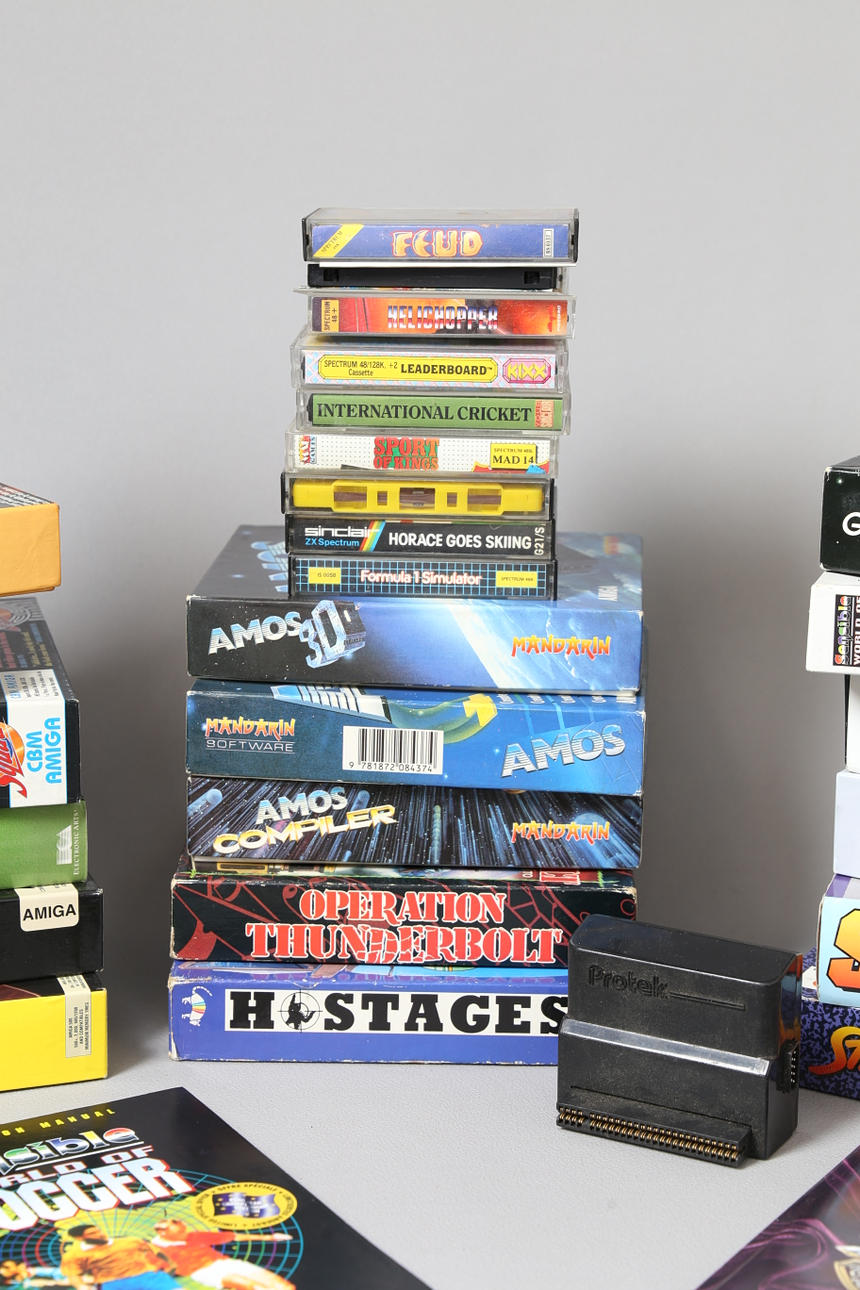Commodore Amiga-Editionen im Boxpack, darunter Mortal Kombat, Street Fighter II, Populous II, John Madden American Football, Battle Isle '93, The Untouchables, FIFA International Soccer, Skidmarks, Hostages, Operation Thunderbolt, Frontier Elite II, Premier League Manager 2, Rocket Ranger, Amos: The Creator, Amos 3D und Amos Compiler. Diese Sammlung enthält auch viele verschiedene lose Spiele und eine Box für Sensible World Of Soccer (Ohne Inhalt), zusammen mit einer Sammlung von ZX Spectrum-Spielen, darunter Yie Air Kung-Fu, Army Moves, Hardball! , A View To A Kill, Samurai Warrior, Mask, Computer Scrabble, Feud, Kane, Moley Christmas, Ooper Megatape 4, Brat Attack Megatape 5, Amaurote, Ninja Master, Ghostbusters und viele mehr. (Menge).
