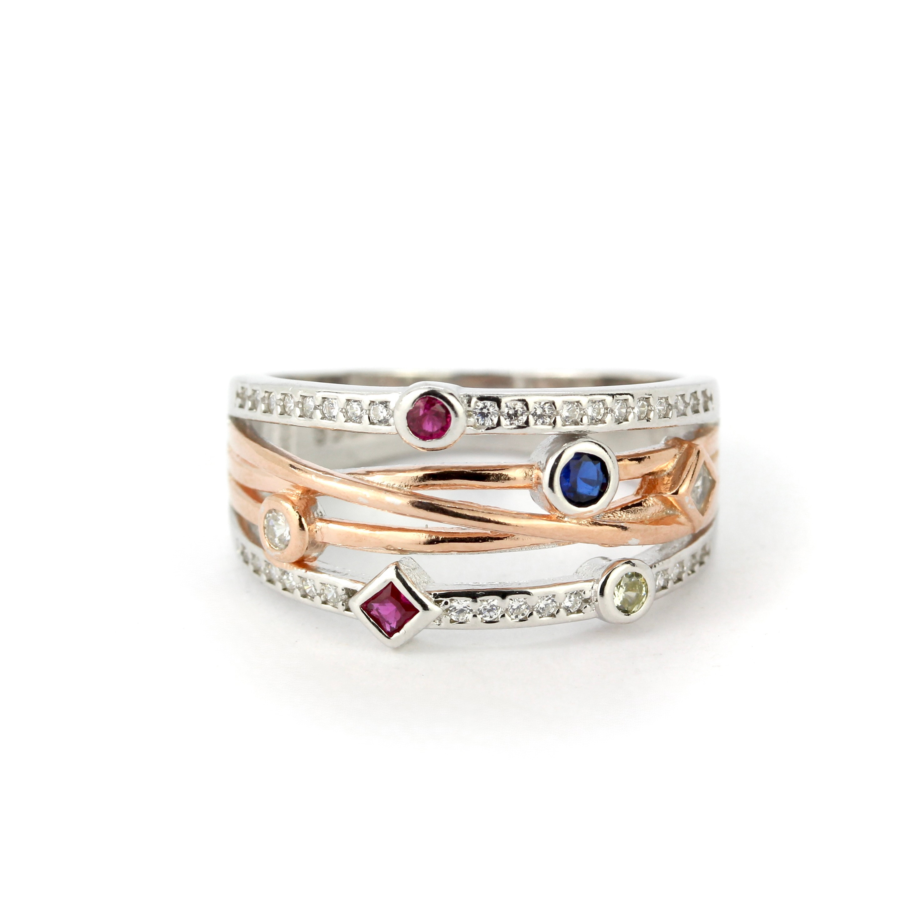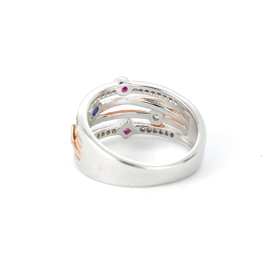 4090405. RING AUS SILBER UND ROSÉGOLD, BESETZT MIT FARBIGEN STEINEN.