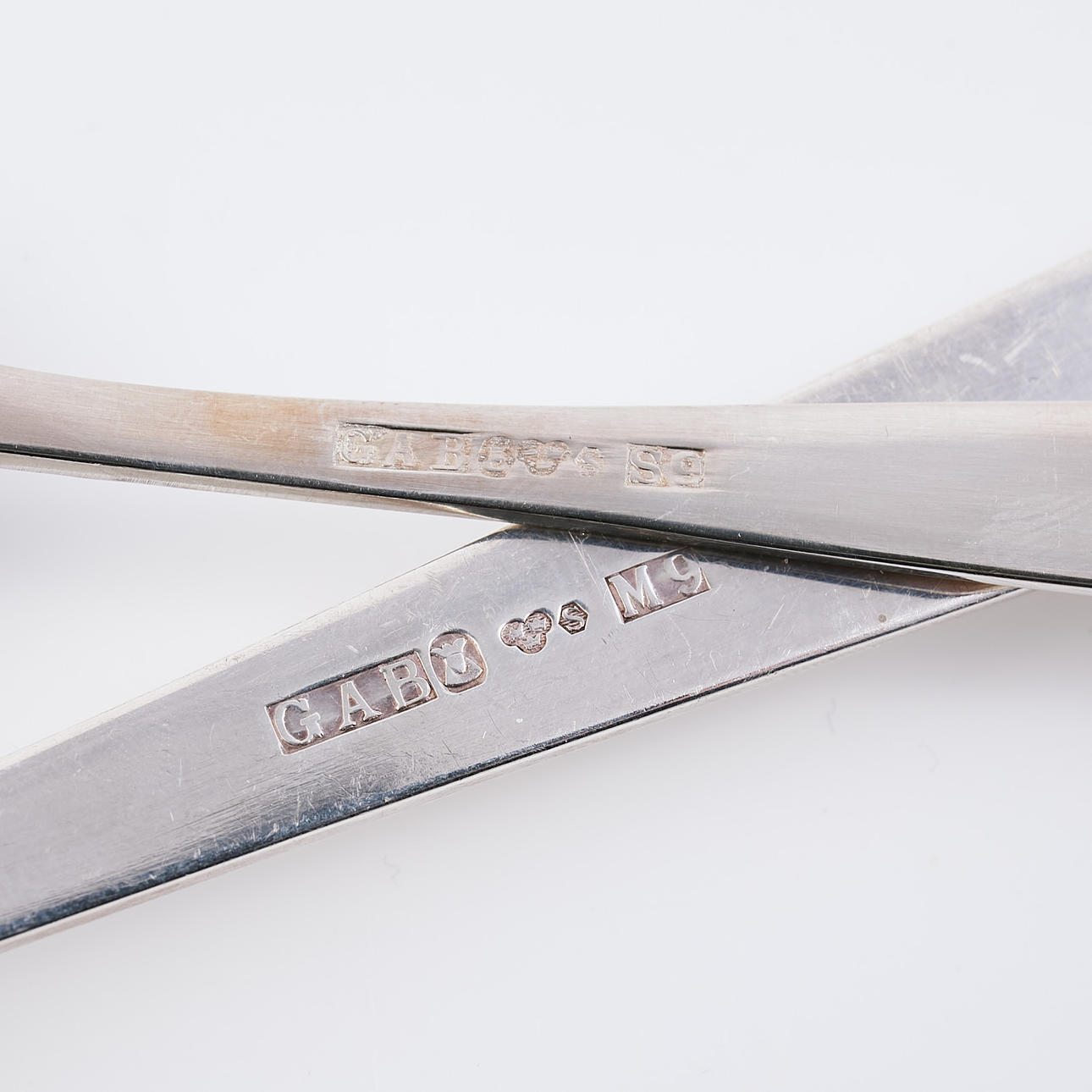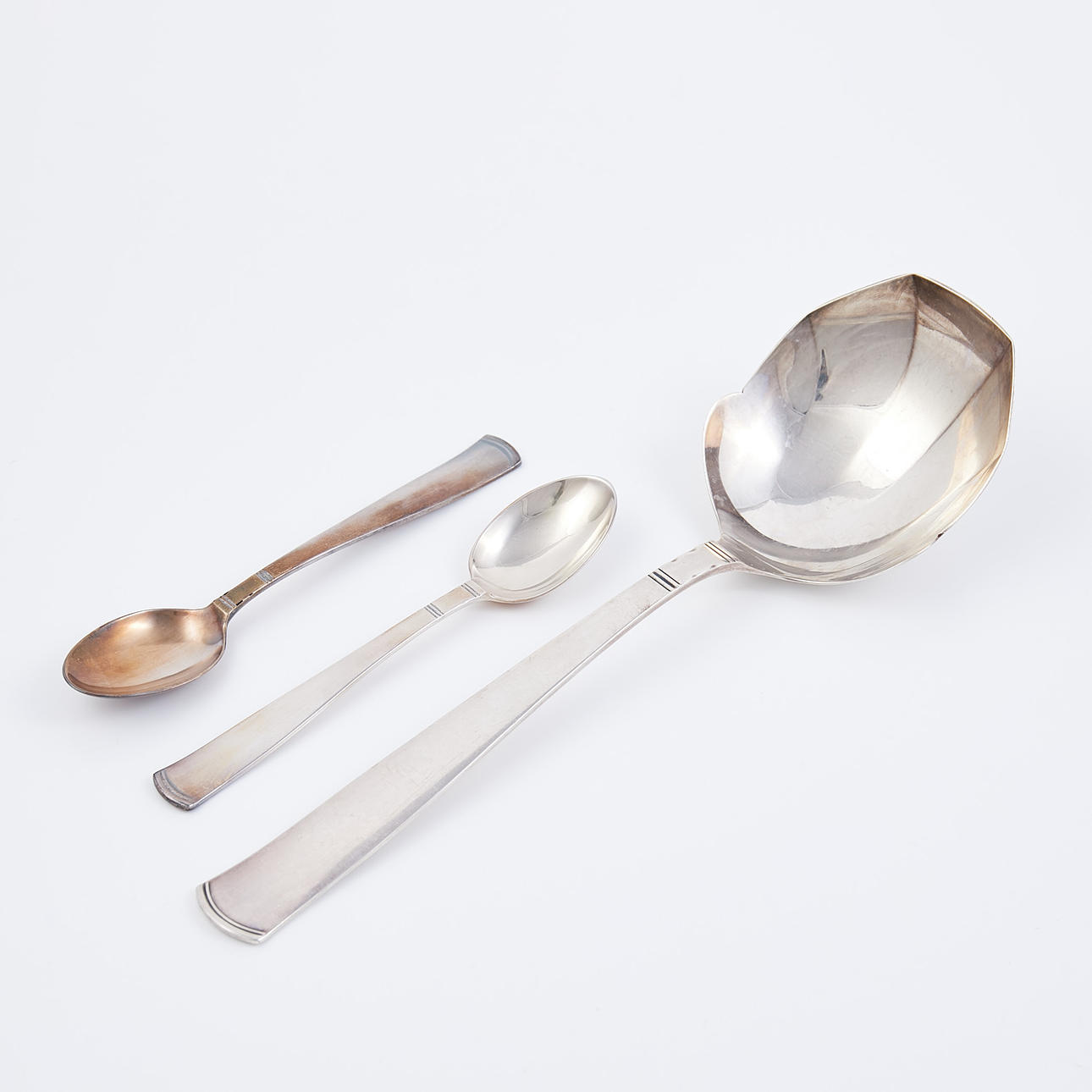 4092044. Ein BATI MATSILVER, 13 dlr., davon 12 Kaffeelöffel und 1 Kartoffellöffel/Servierlöffel, Modell „Rosenholm“, GAB, 1960er.