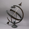 Sonnenuhr, Kupfer, mit Schlange gekrönt.
