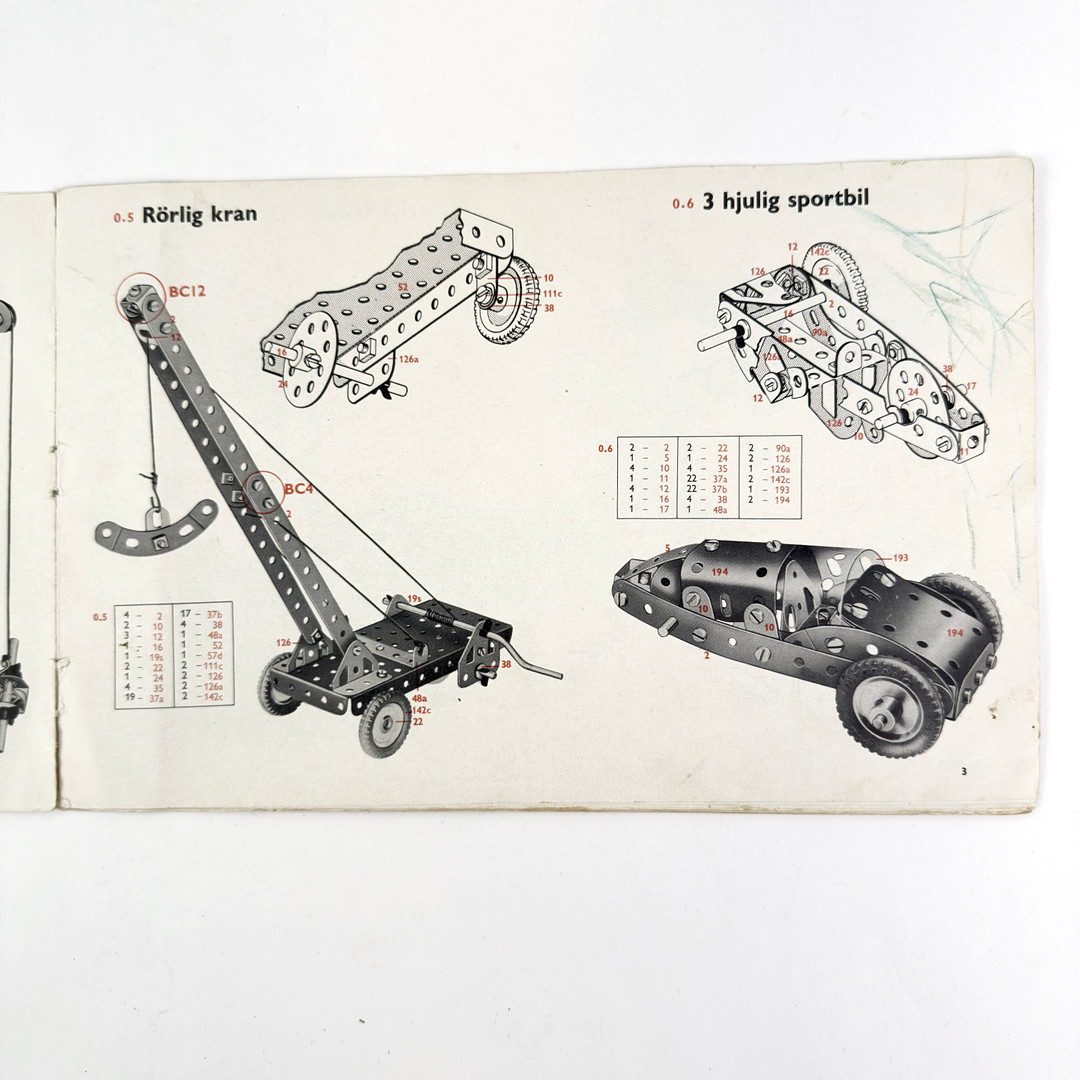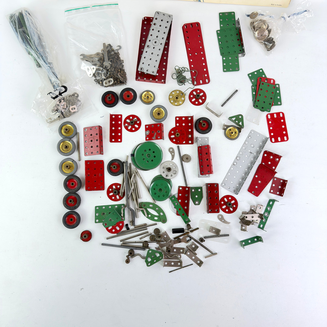 4099487. LOT, MECCANO, Bauteile, Modellbücher, Metall.