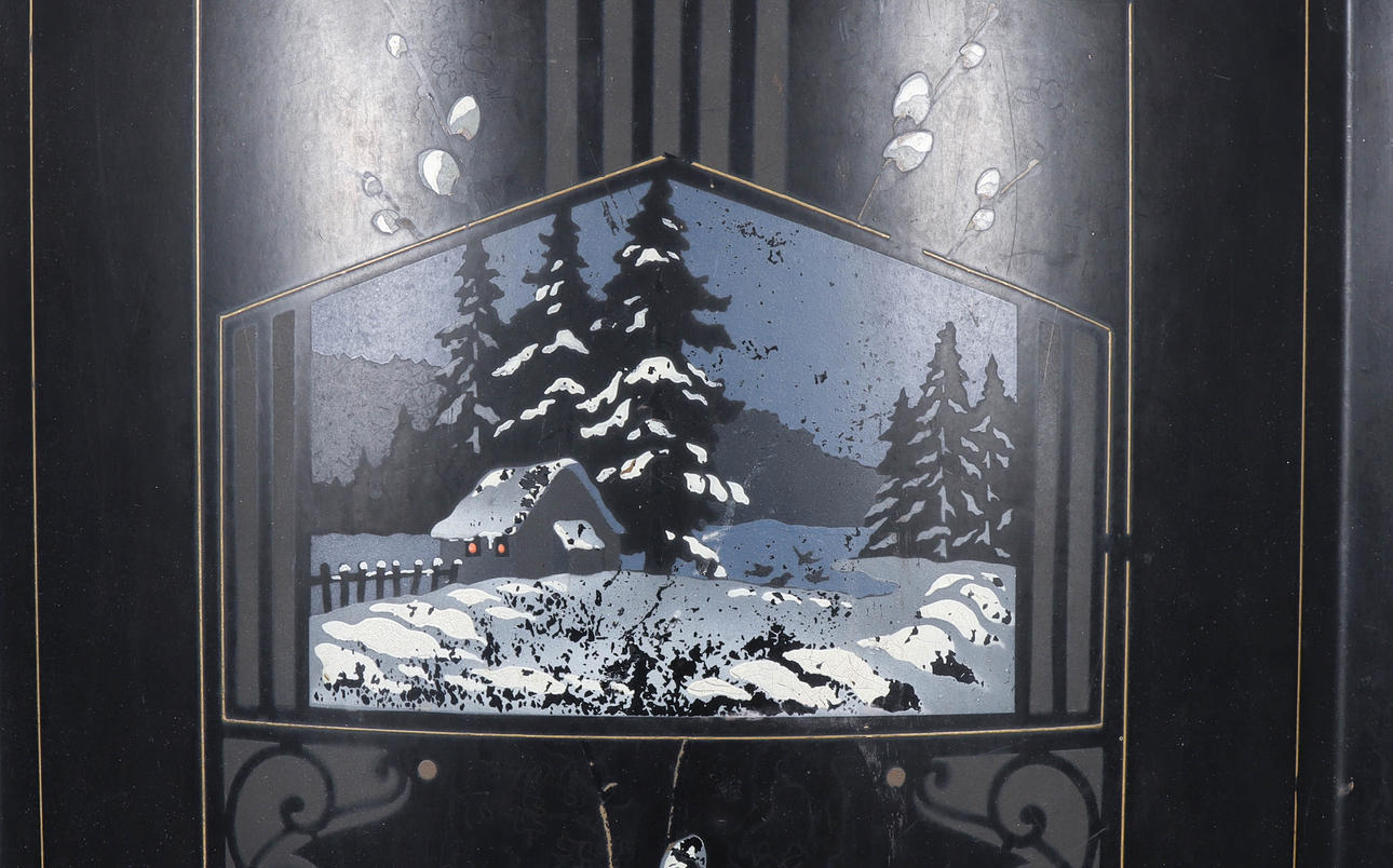 Bemaltes Blatt mit Wintermotiven und Blumen.
