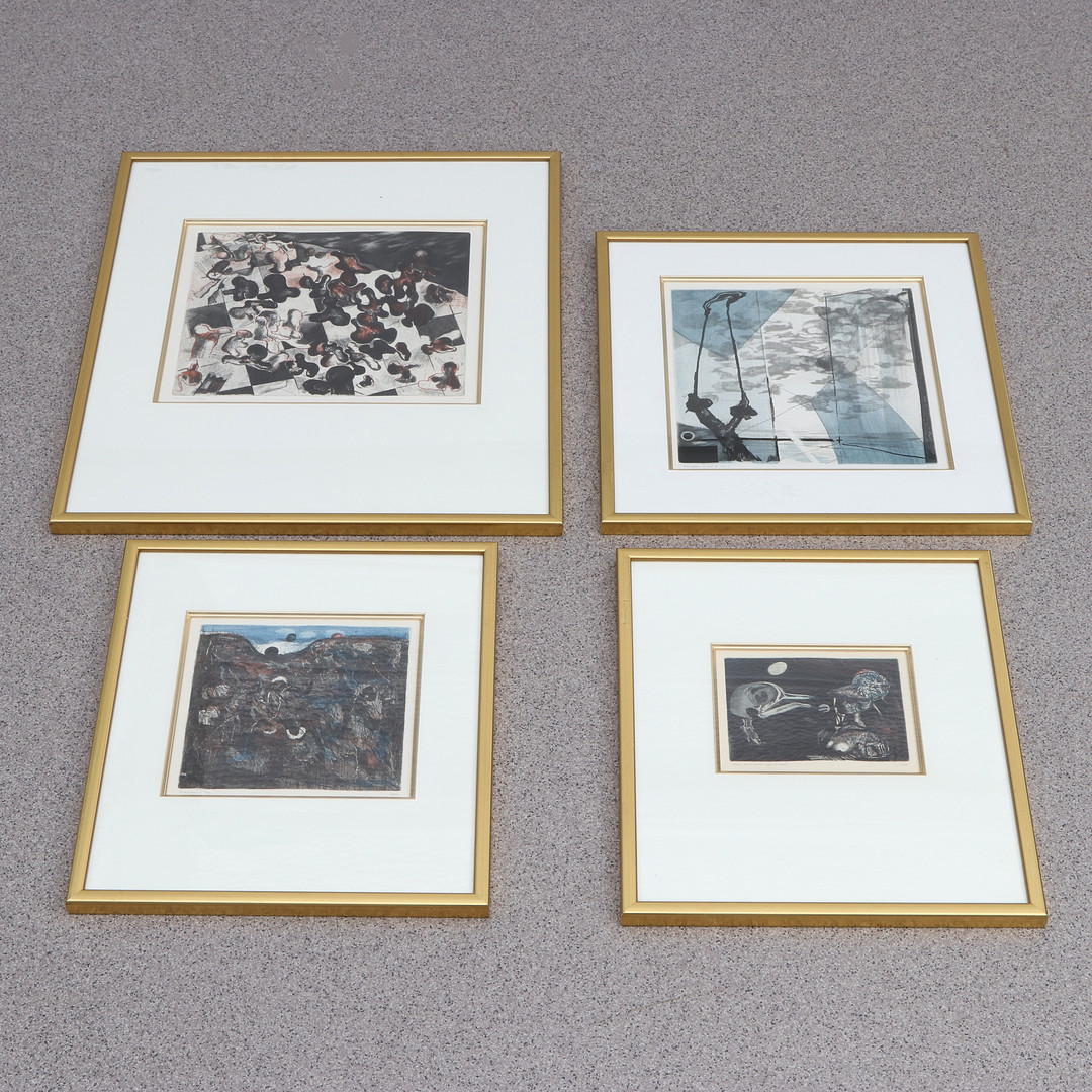 4104422. JANNE DAHL. Radierungen, vier Stück Kompositionen. Signiert.