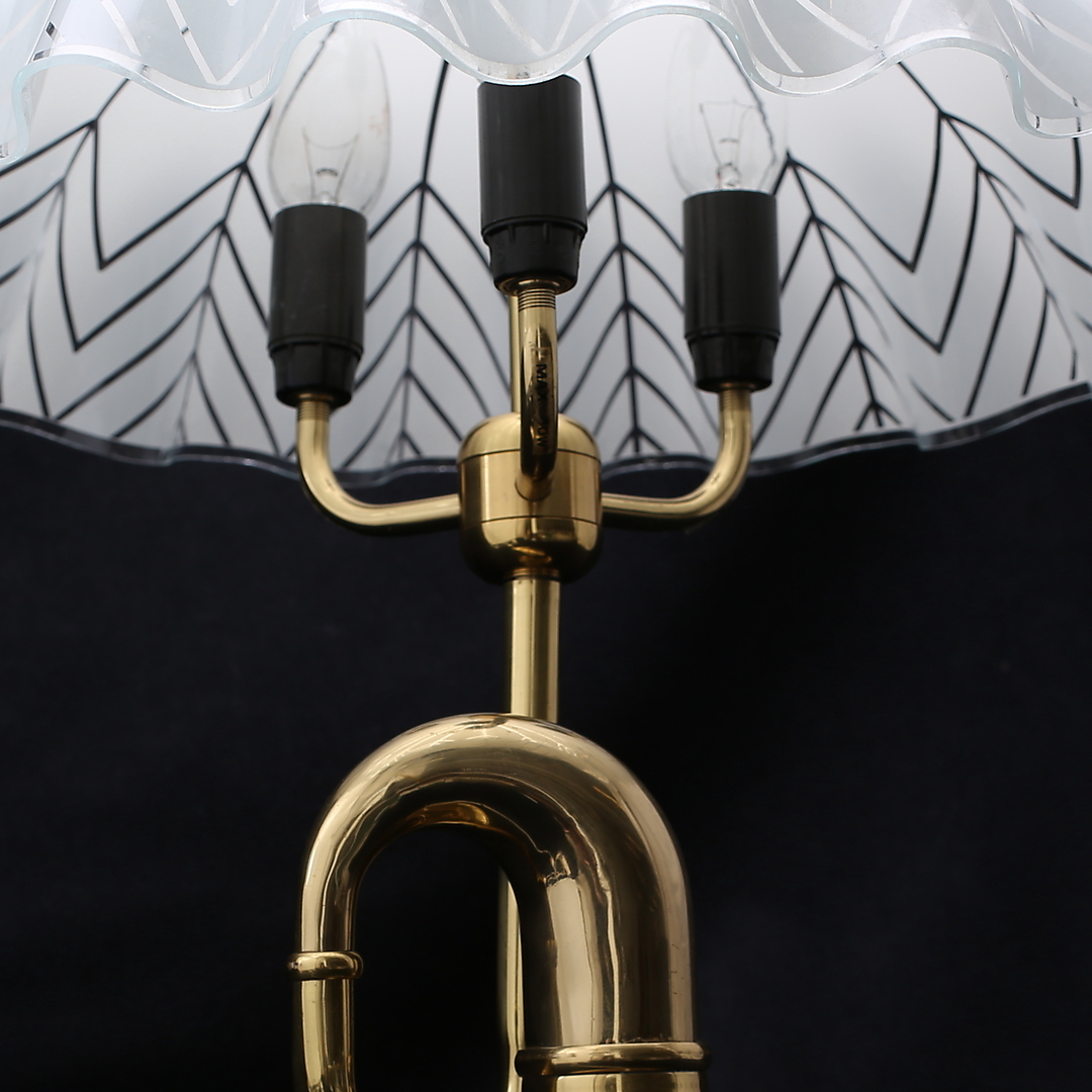 410833. TISCHLAMPE, Messing und Glas, 1989.