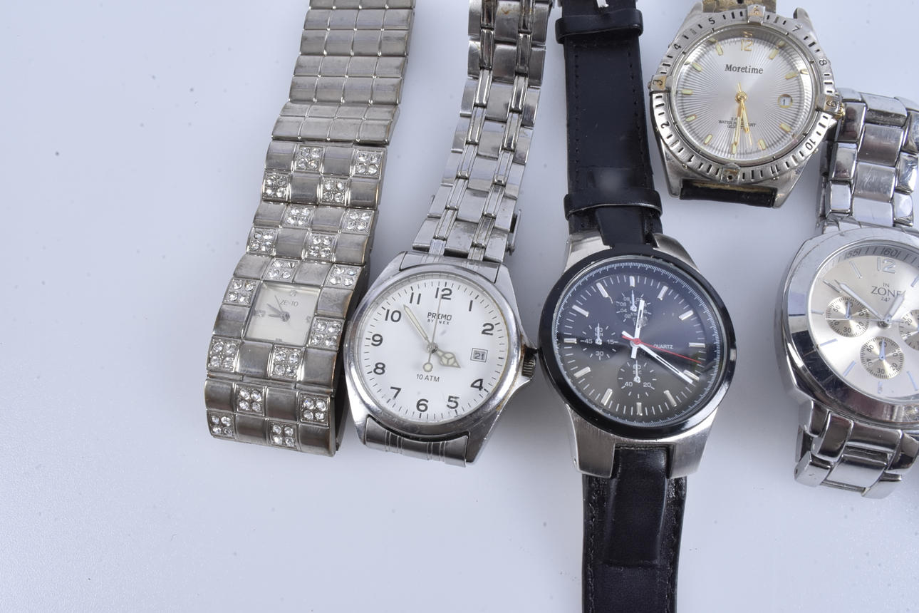 4111382. ARMBANDUHREN, 6 Stück, blau Moretime und Primo.