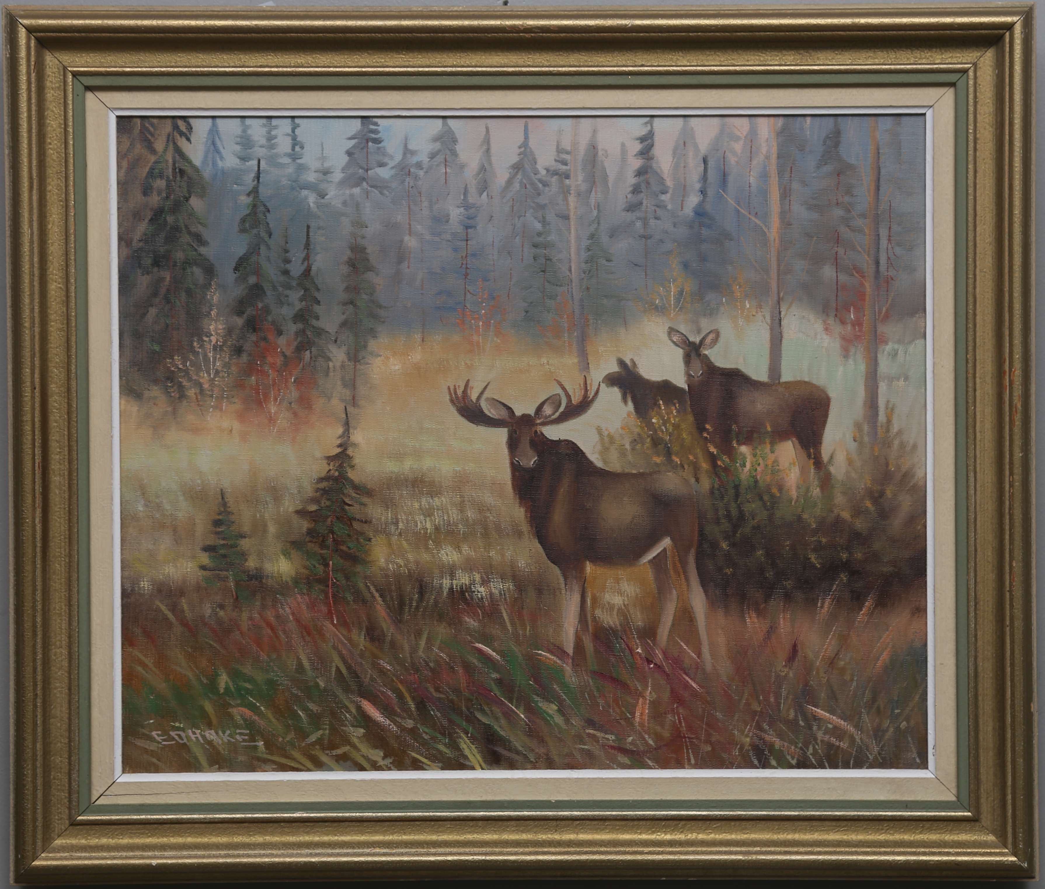 411778. CHARLES FOLKE EDHAKE. Elch. Öl auf Leinwand. Unterzeichnet.