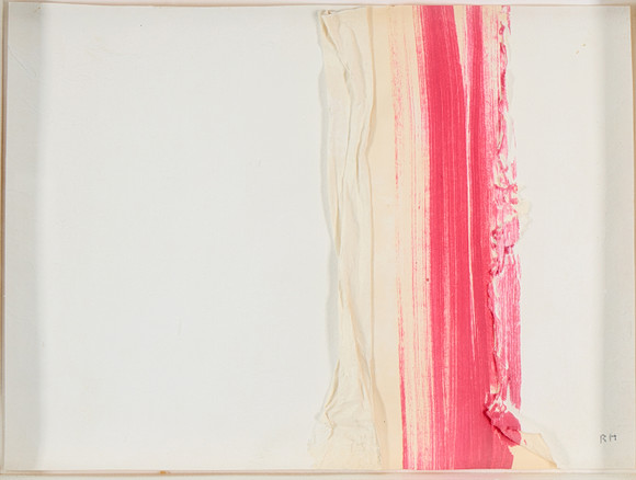 Nicht außerhalb des Bilds untersucht. Leichte Spuren nach dem Klebeband. Feuchtigkeitsflecken auf dem Passepartout.