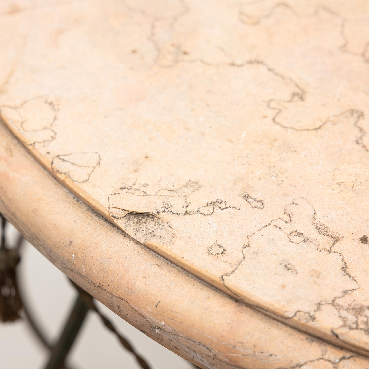 GARTENTISCH, geschmiedet mit Steinplatte, 20. Jahrhundert.