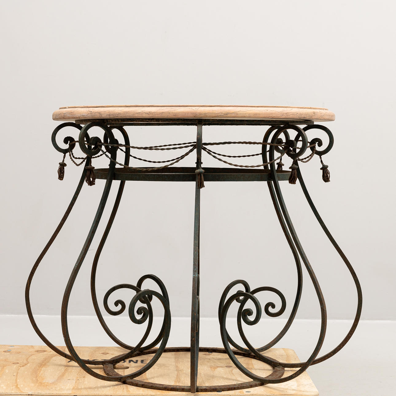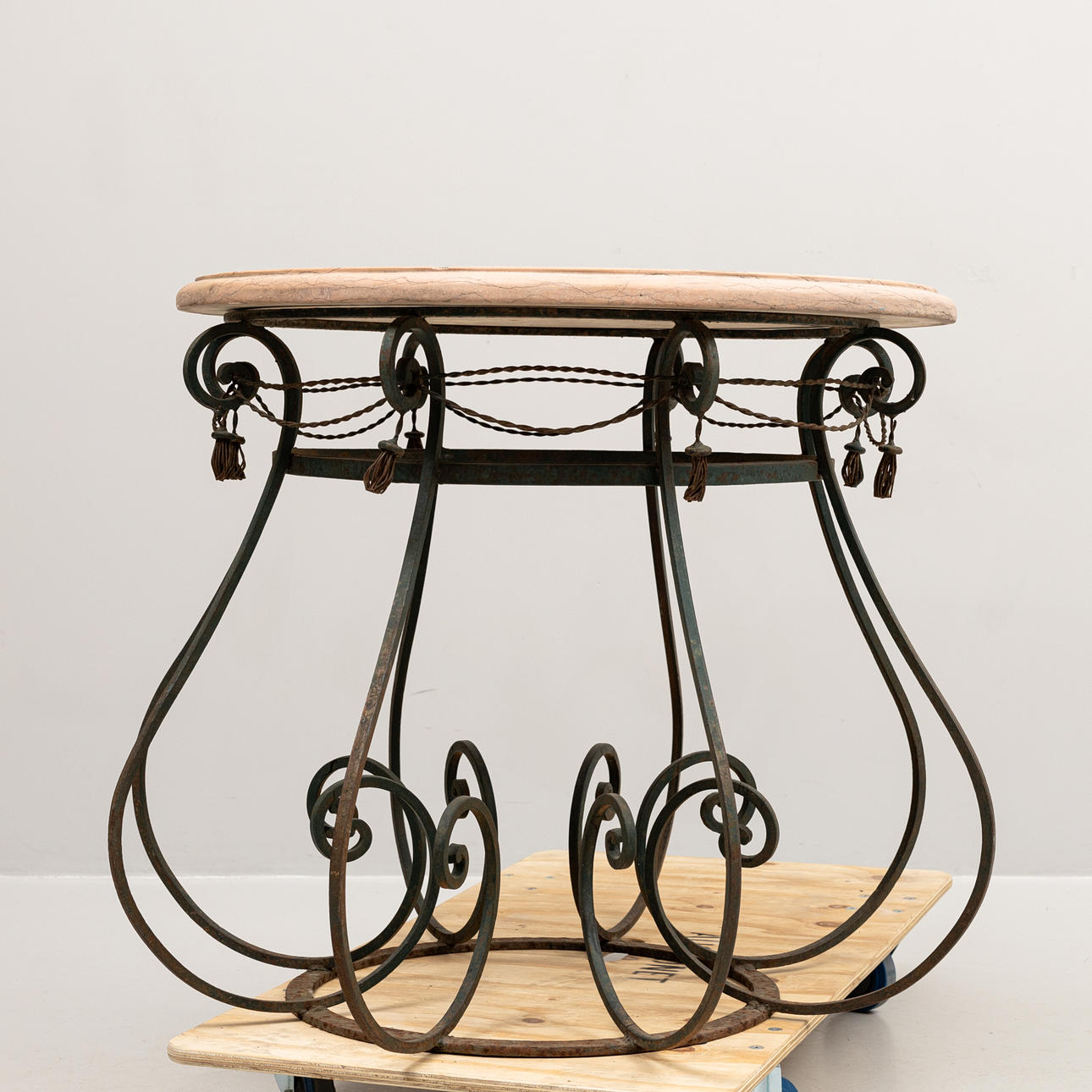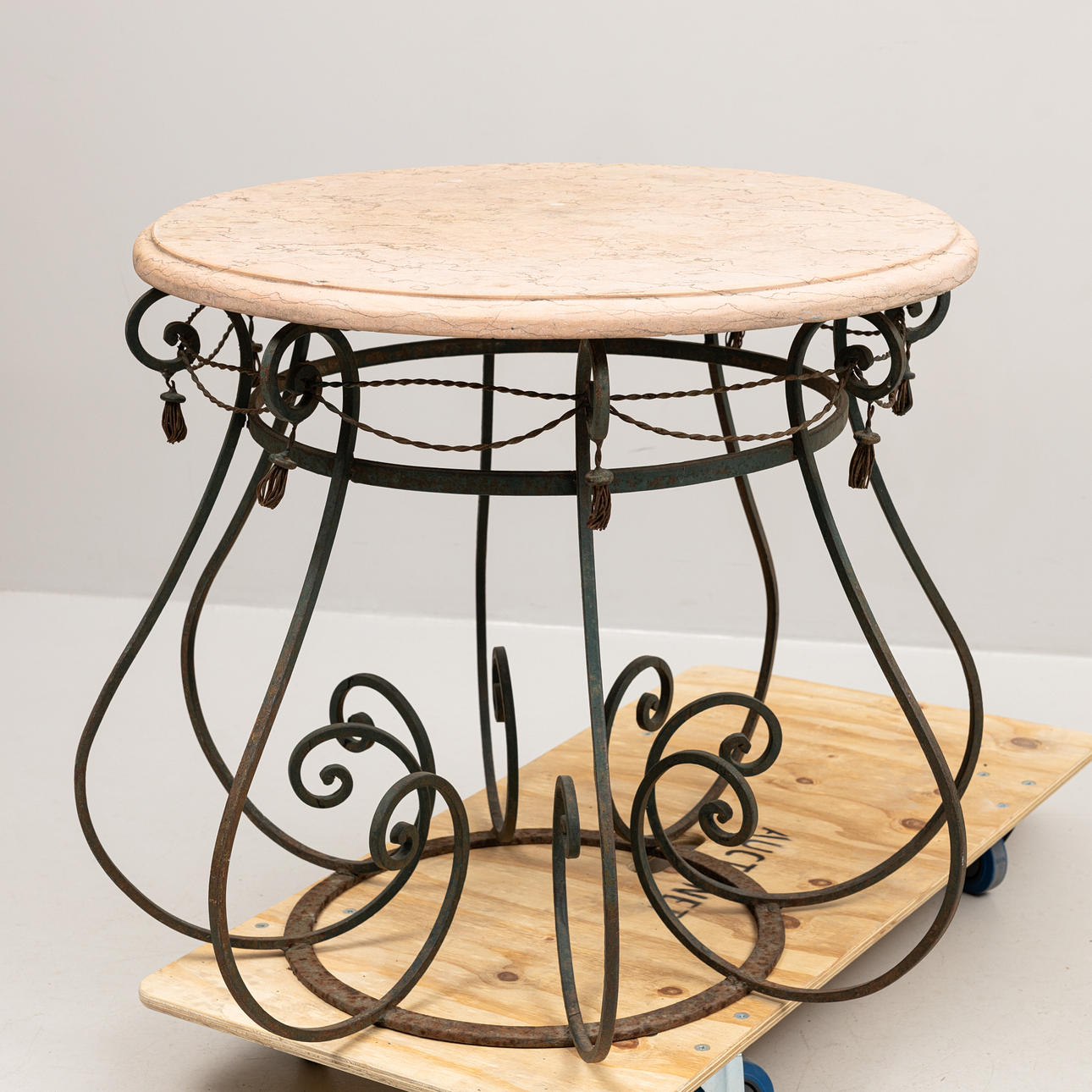 4120314. GARTENTISCH, geschmiedet mit Steinplatte, 20. Jahrhundert.