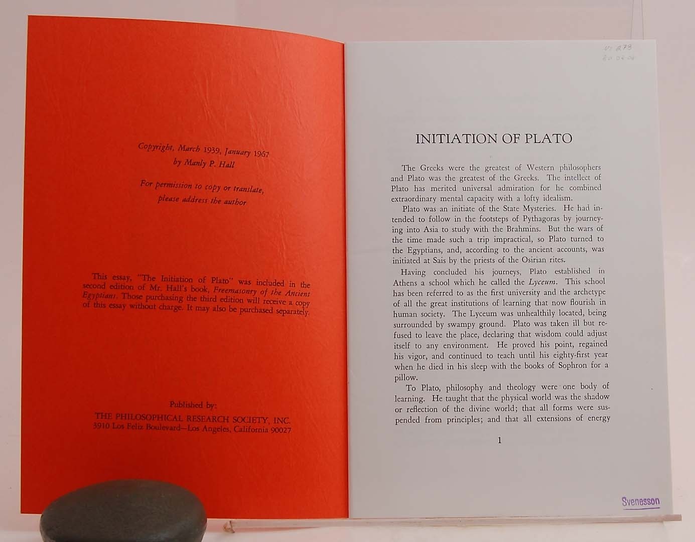 412295. FRIMURERI. EINLEITUNG PLATOS.