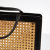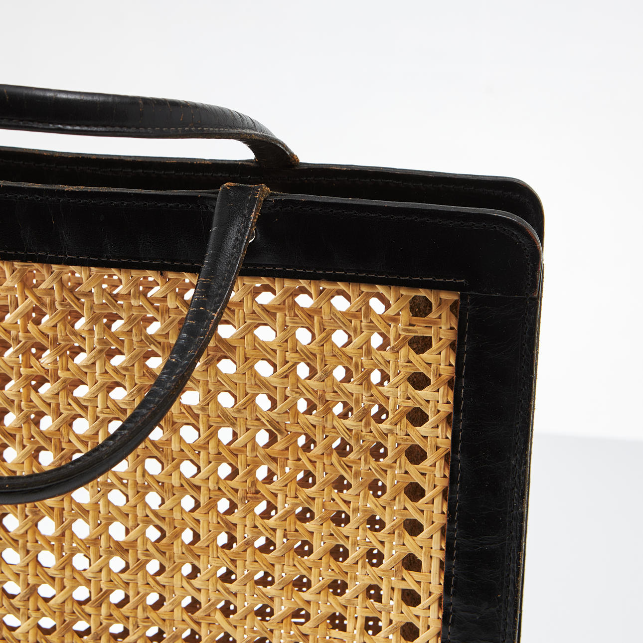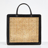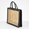 PALMENGRÜN. Handtasche, schwarzes Leder und Rattan.