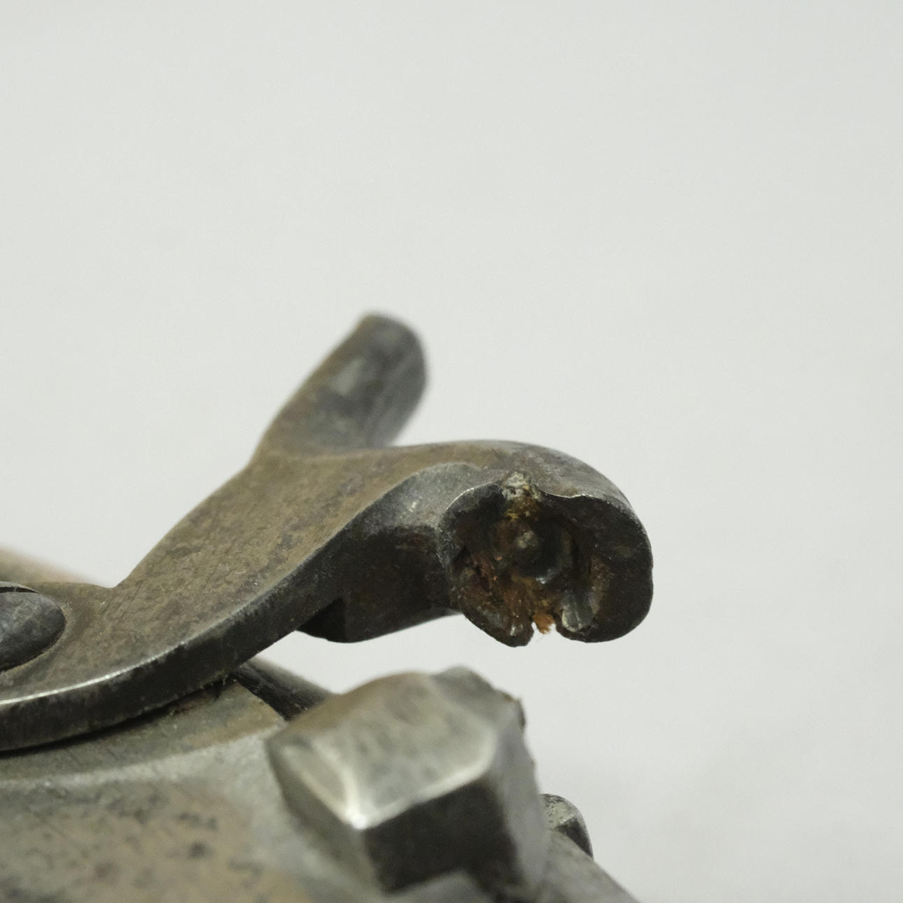 Gebrauch und altersbedingte Abnutzung. Männchen mit Bruch.
