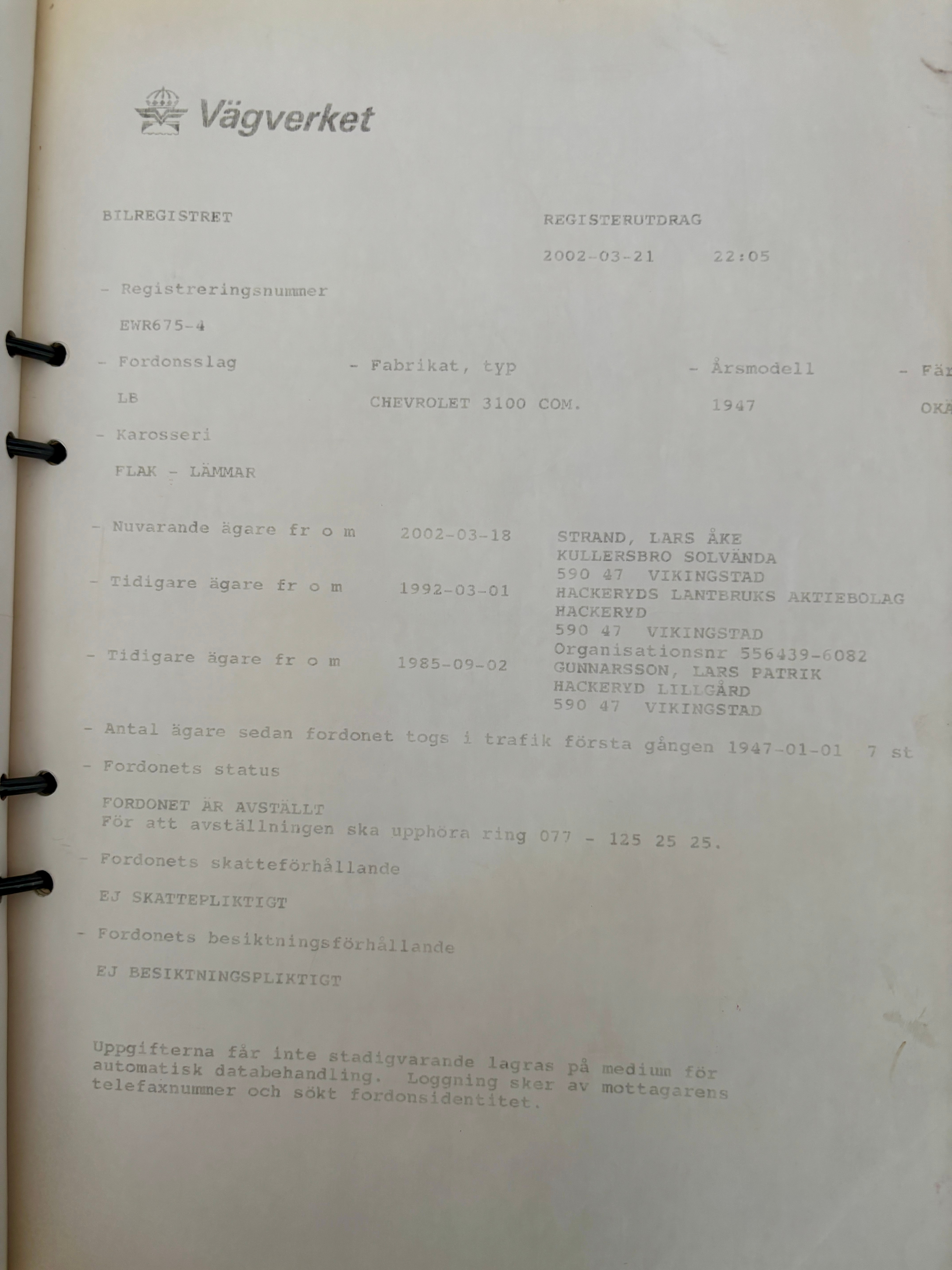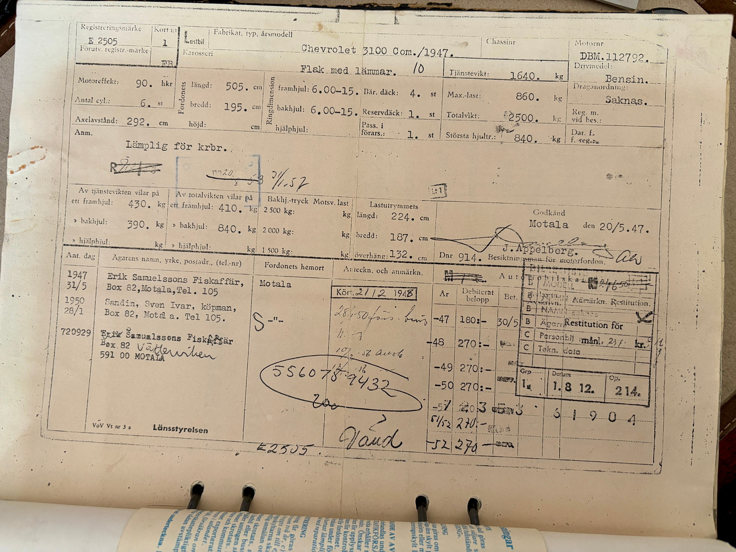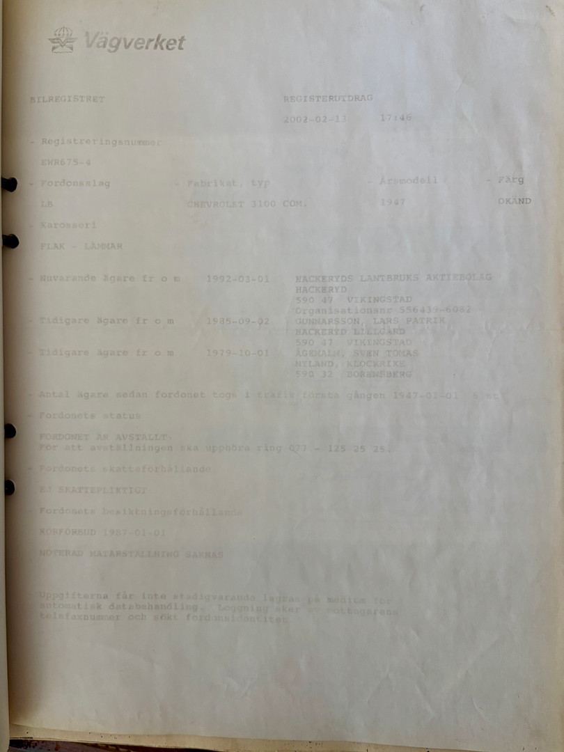 4129855. CHEVROLET 3100 COM., 3,5-L-PICKUP, 1947.