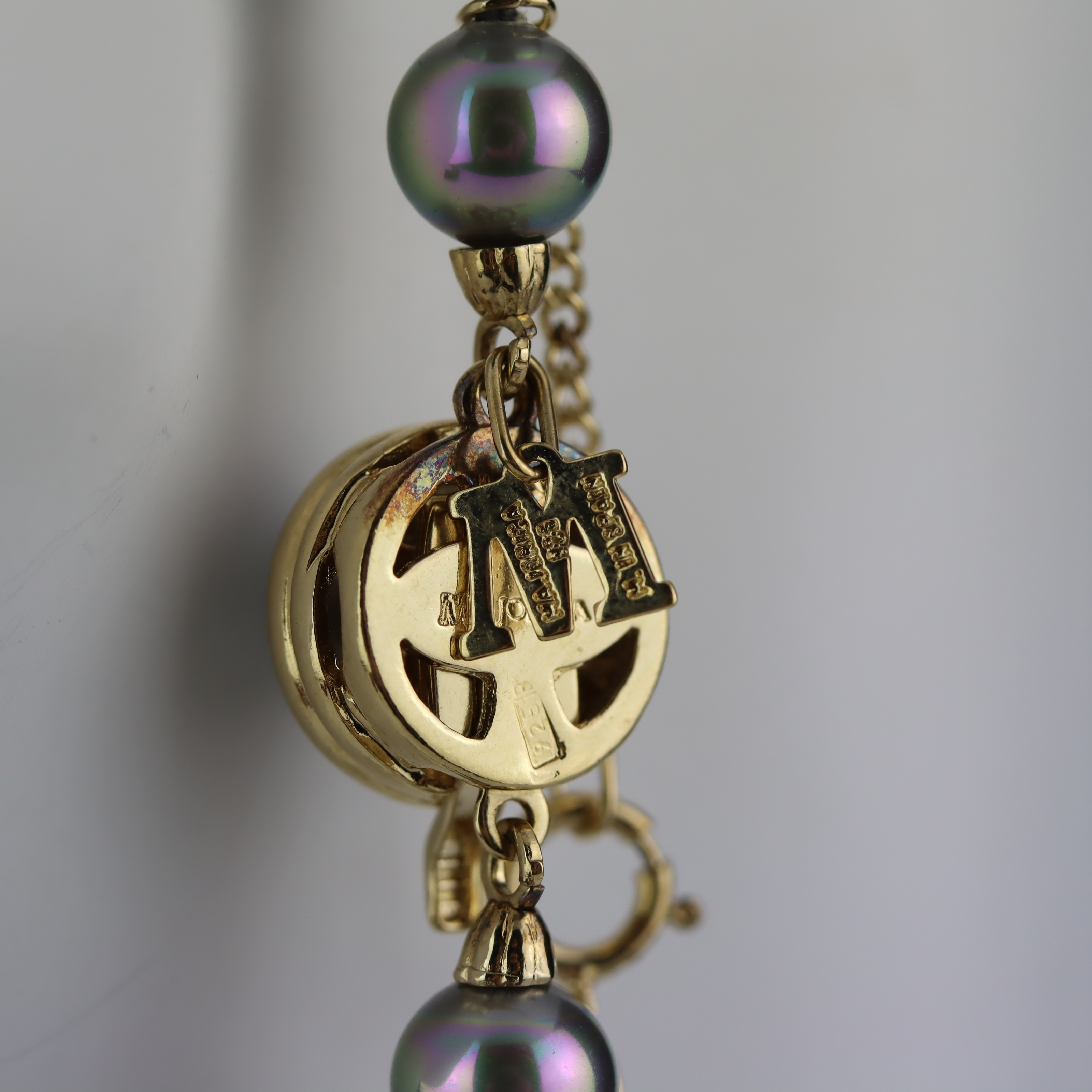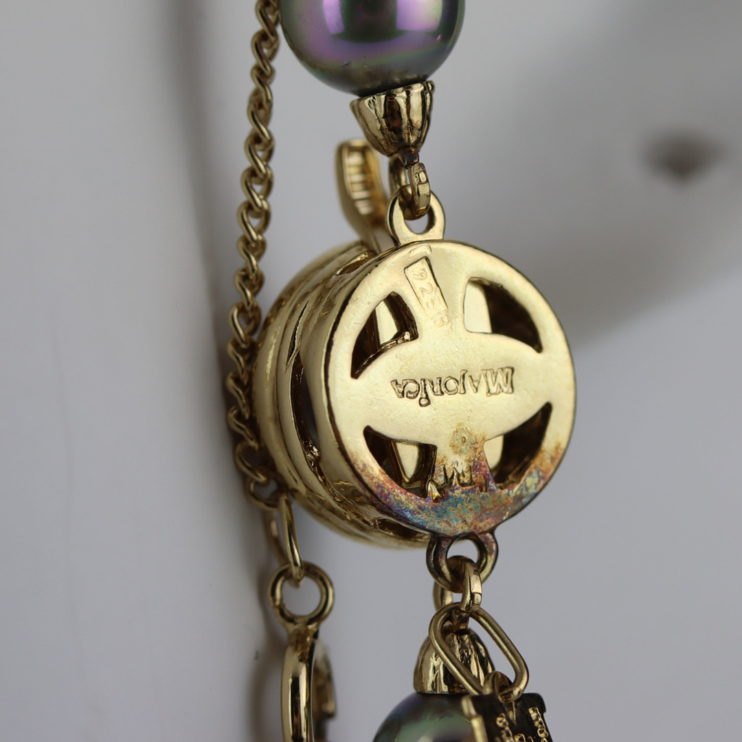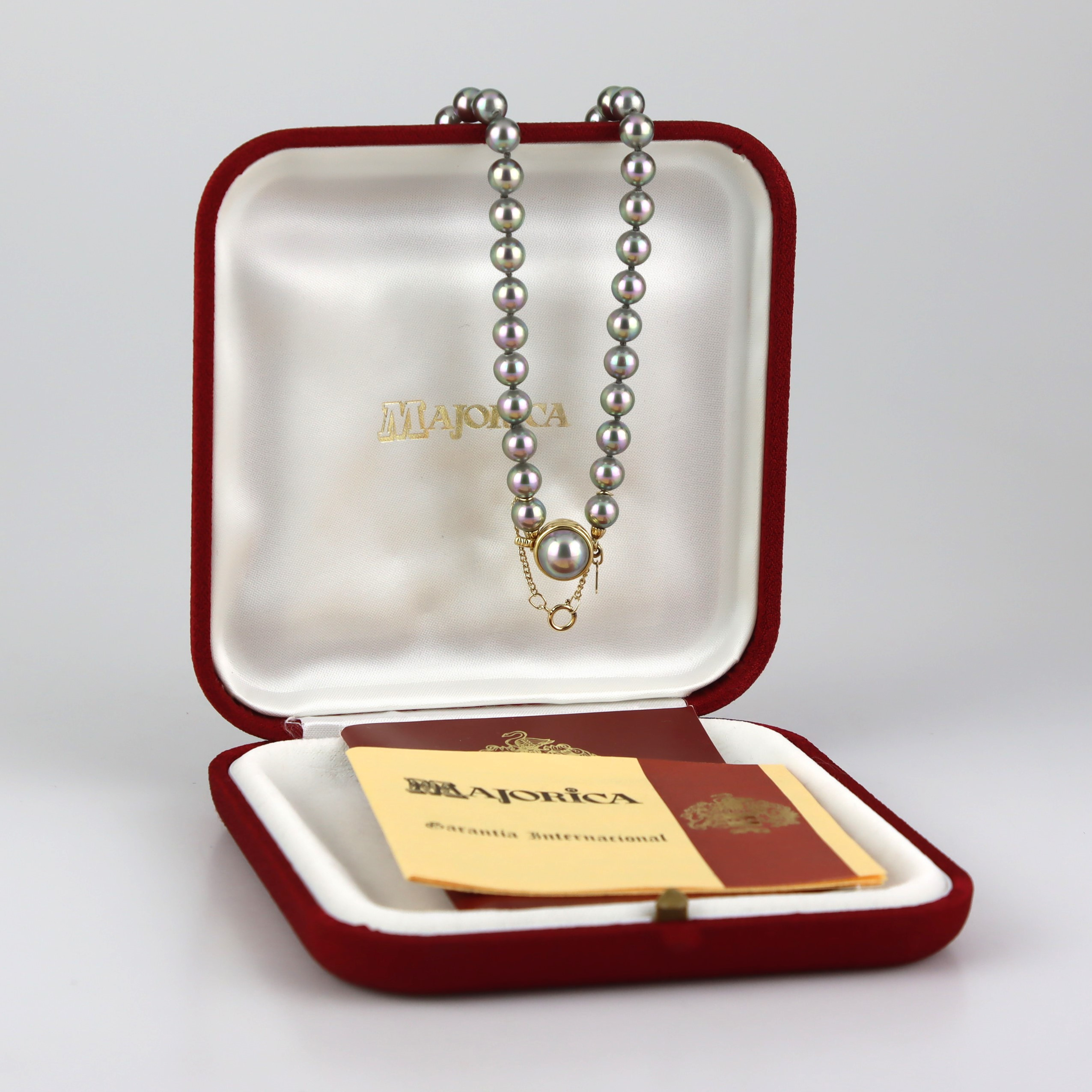 4134444. PERLENHALSKETTE, graue Majorica-Perlen, vergoldeter Silberverschluss.