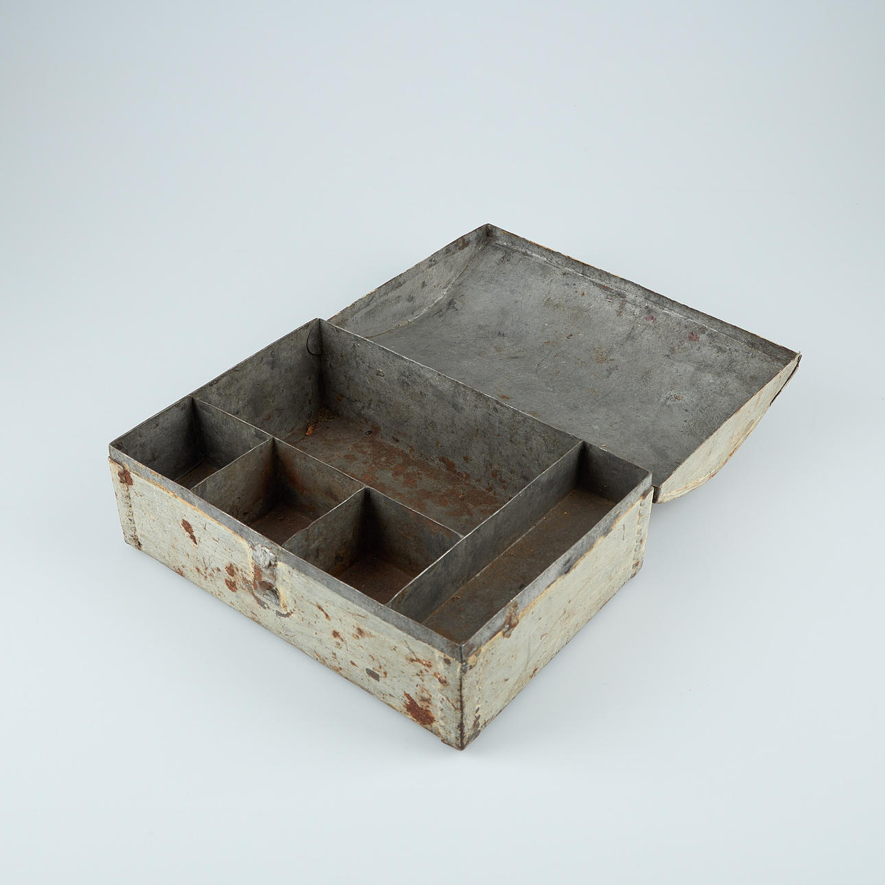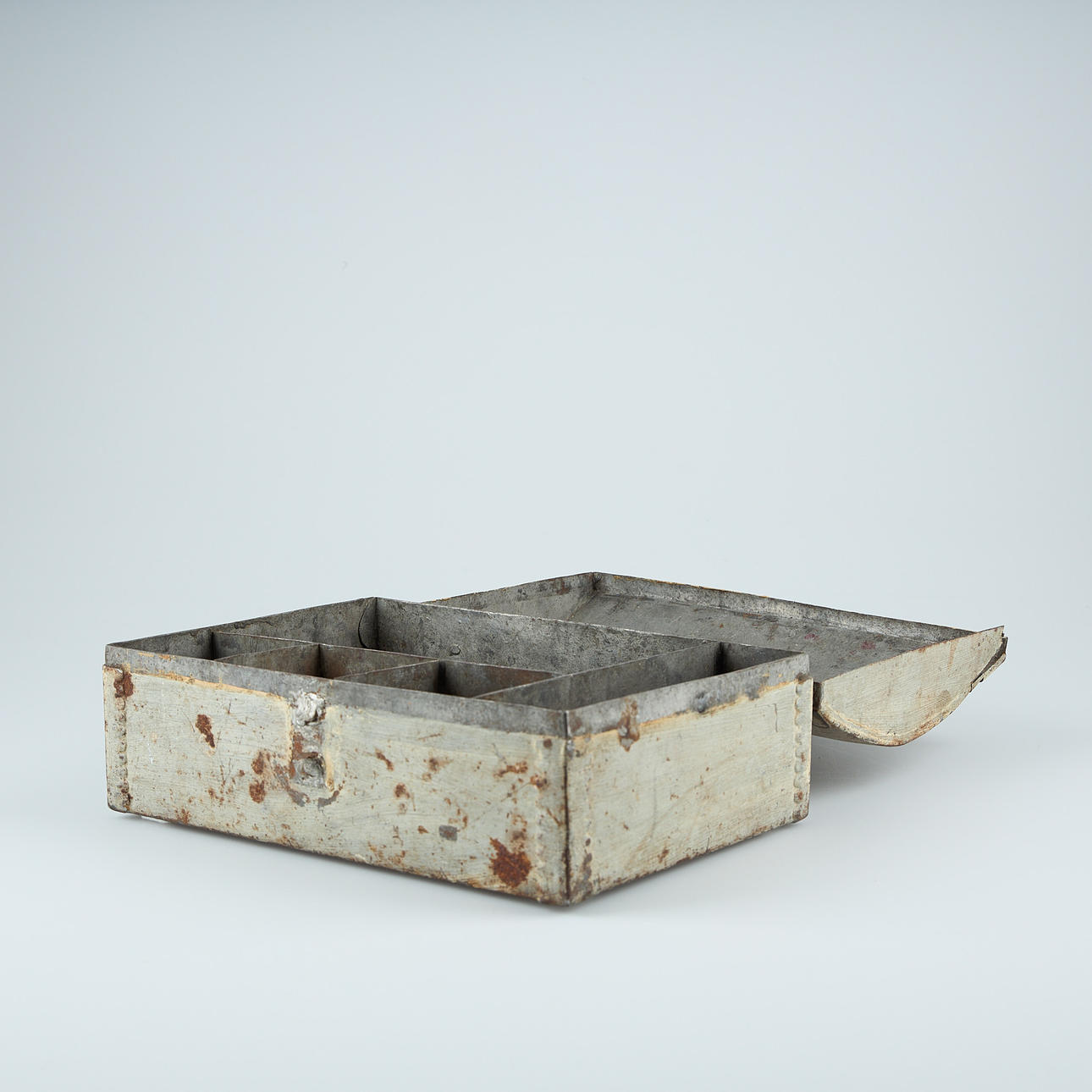 Details aus lackiertem Blech und Messing. Breite 26,5 x 18,5 x 11 cm.