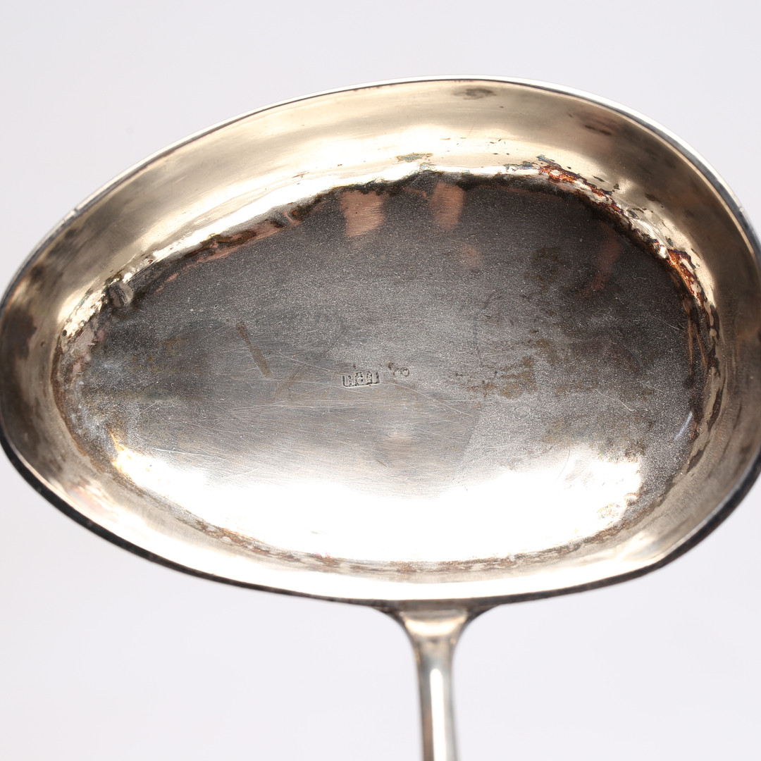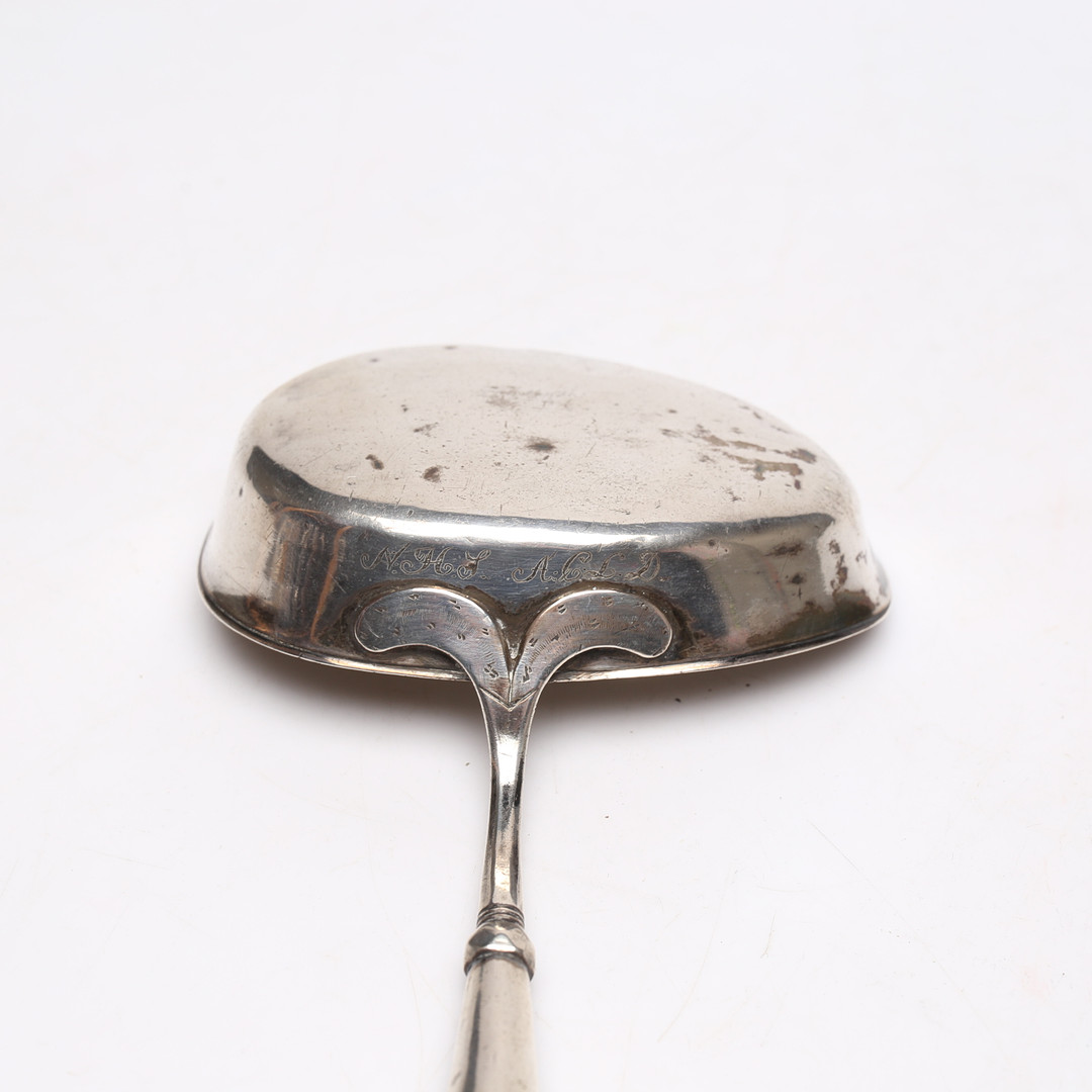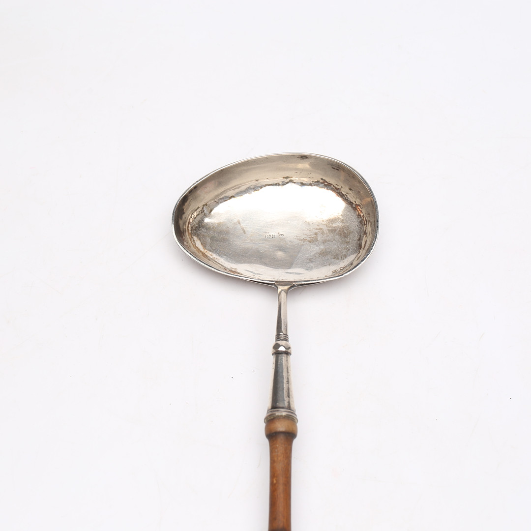 4136195. Silberner Suppenlöffel mit Holzgriff, 19. Jahrhundert.