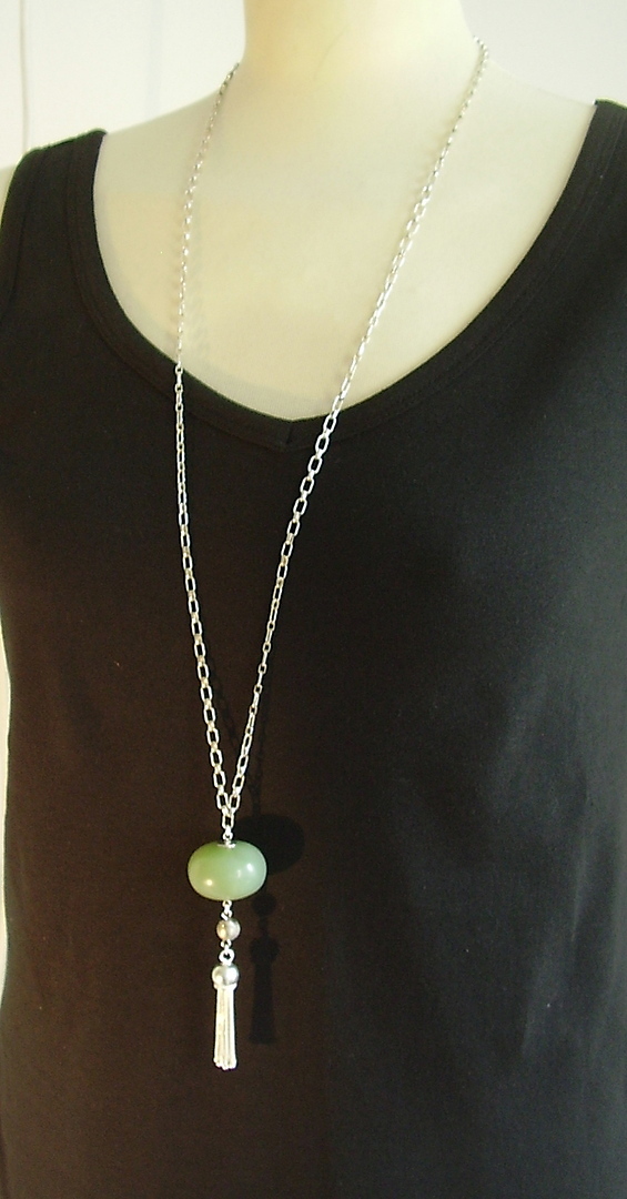 413655. ART DEKO COLLIER MIT JADE Silber 800.